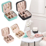 منظم مجوهرات من الجلود بسحاب محمولة . بوكس تخزين مربع مع فواصل الحاويات للخواتم والأقراط وقلادة المنزل المنظم