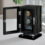 دلل ساعة مراقبتك في أحضان فاخرة من خلال جهاز لف الساعات الذكية Premium 2 الخاصة بنا، والذي يعمل بمحركات ألمانية ومزين بساعة من خشب الأبنوس زيبرانو - تحفة تحافظ على دقة الساعات بدقة ودقة.