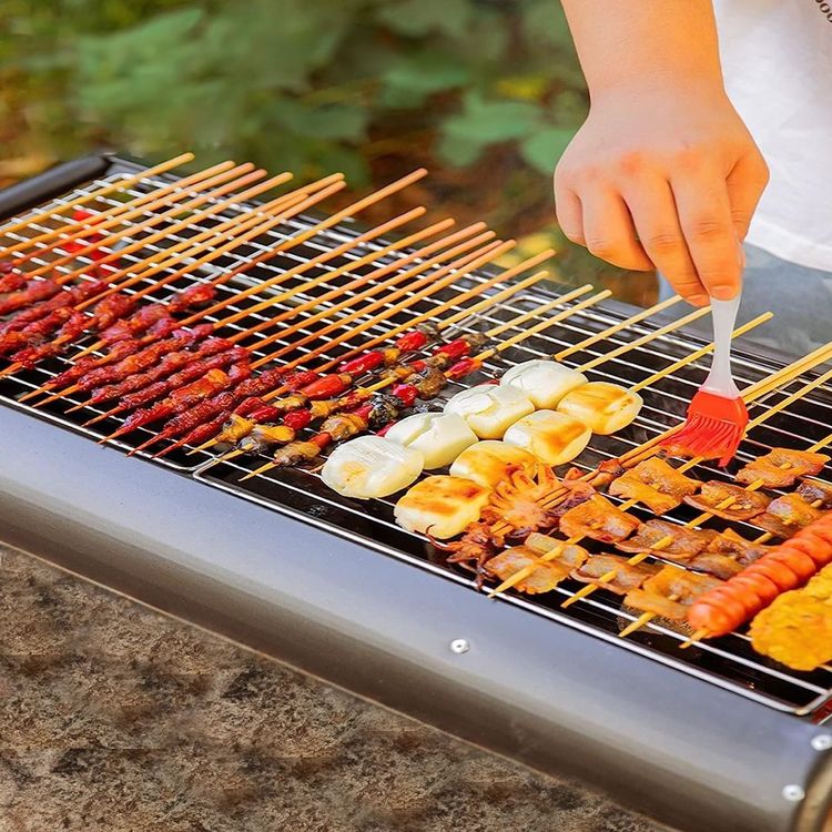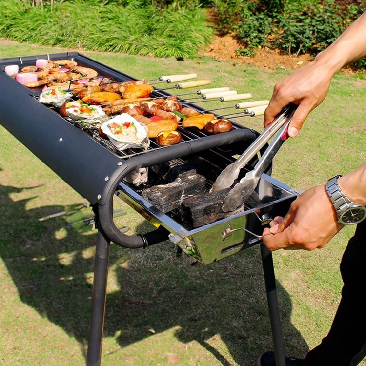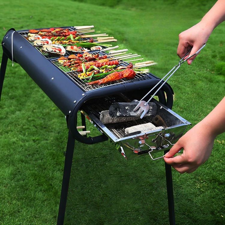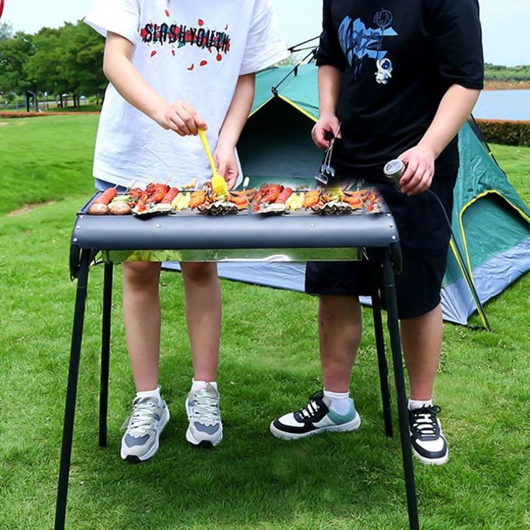 شواية شواء فحم محمولة متعددة الاستخدامات - مصنوعة من الستانلس ستيل المقاوم للصدأ ، آمنة على الطعام للطهي في الهواء الطلق، مثالية للنزهات والتجمعات العائلية وفعاليات بناء الفريق ومثالية للتخييم والنزهات الخارجية