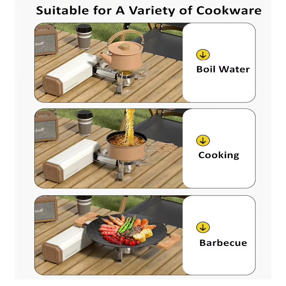 أداء سريع وقوي: بفضل خرج الطاقة المذهل الذي يبلغ 3900 واط، يضمن موقد التخييم الخاص بنا غليان الماء السريع وإعداد الطعام. يستغرق غليان 1 لتر من الماء أقل من 10 دقائق، مما يتيح لك الاستمتاع بوجباتك في وقت أقرب.