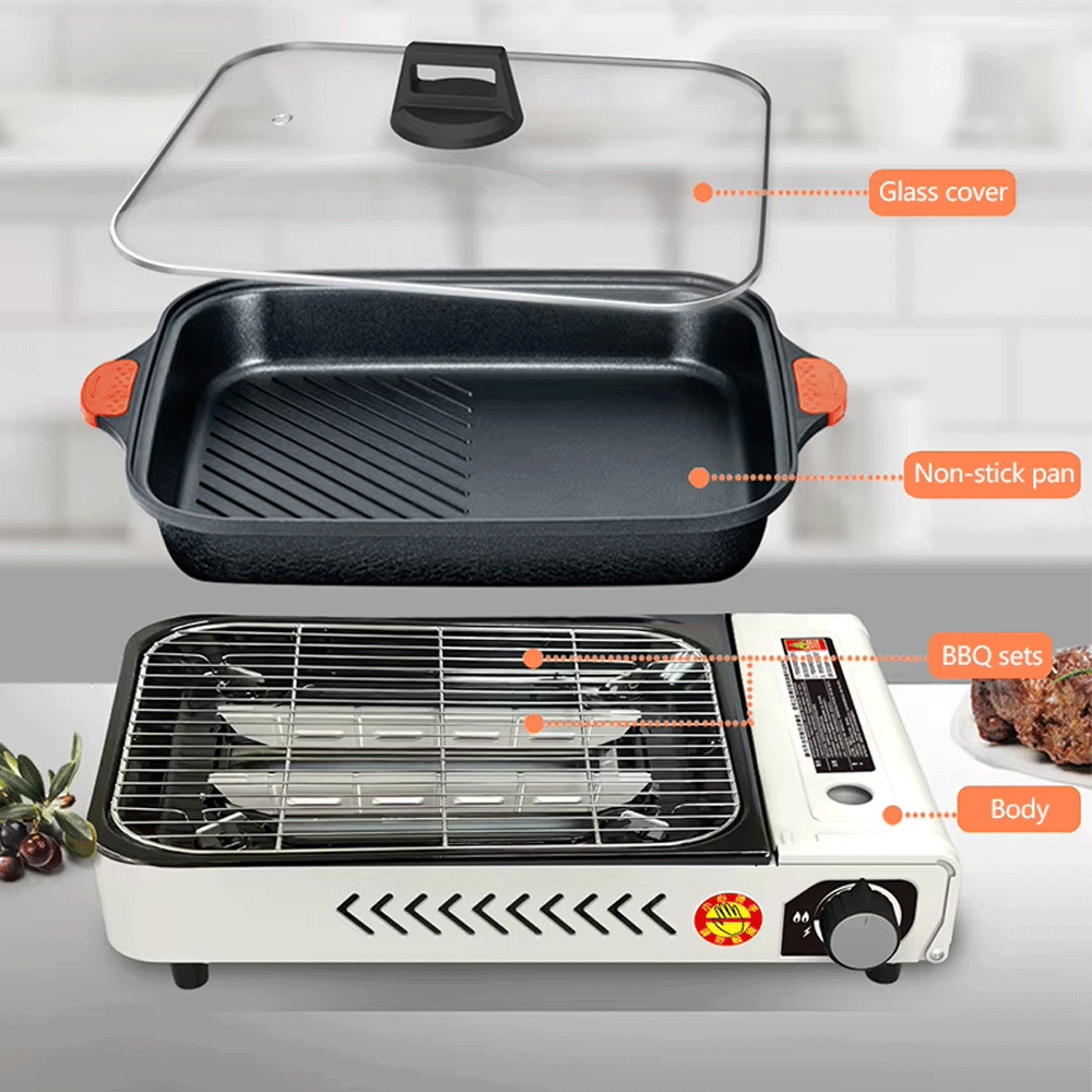 موقد غاز محمول مع شواية شواء سهلة التنظيف وإشعال إلكتروني ومضاد للانفجار للشواء الخارجي