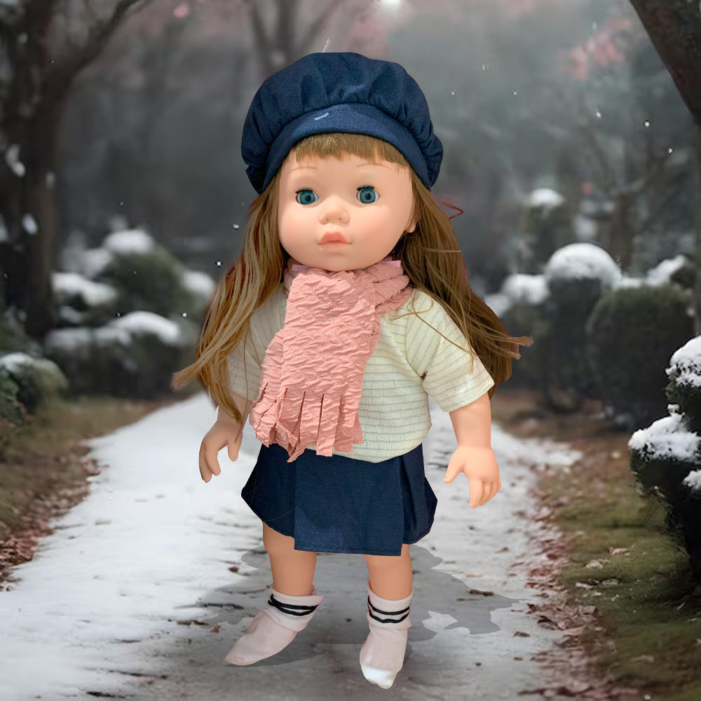 • الملابس: ترتدي الدمية ملابس لطيفة ومفصلة، بما في ذلك الإكسسوارات مثل القبعات والجوارب والبطانيات.