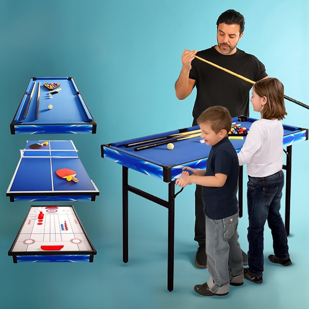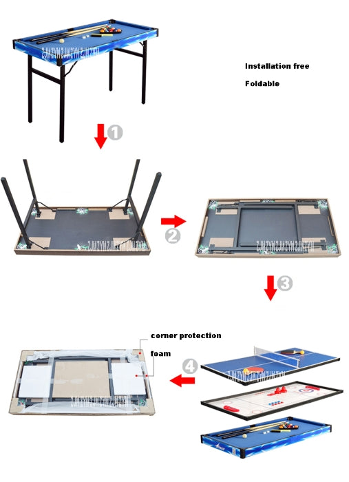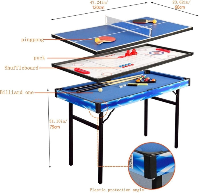 العديد من الألعاب: متعة لا تنتهي أبدًا في طاولة لعبتنا حيث يمكنك لعب تنس الطاولة والهوكي الهوائي وبلياردو البلياردو وشفلبورد الكل في واحد! ستكون أمسيات اللعب في منزلك أو غرفة الألعاب أكثر إمتاعًا مع طاولة الألعاب 4 أقدام 4 في 1