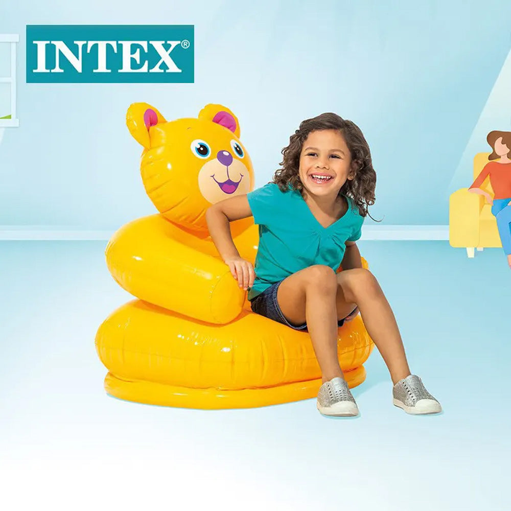 كرسي الحيوانات السعيدة القابل للنفخ مع مسند للذراعين للأطفال