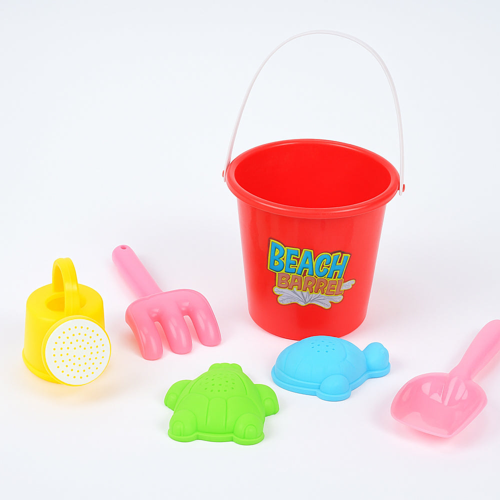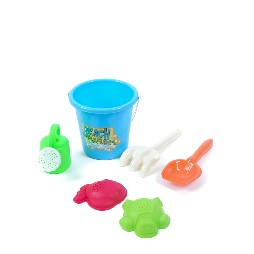 6 قطع متنوعة تشمل دلو، مجرفة، قالب، وملحقات أخرى.