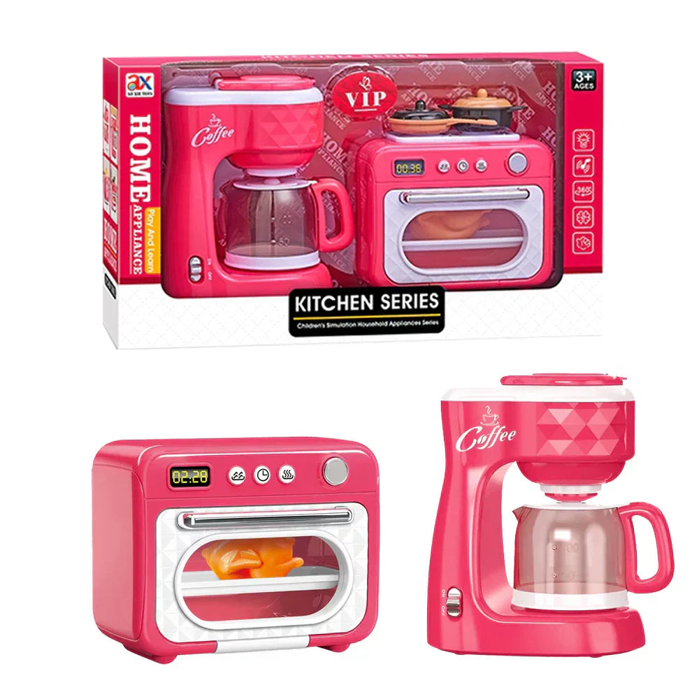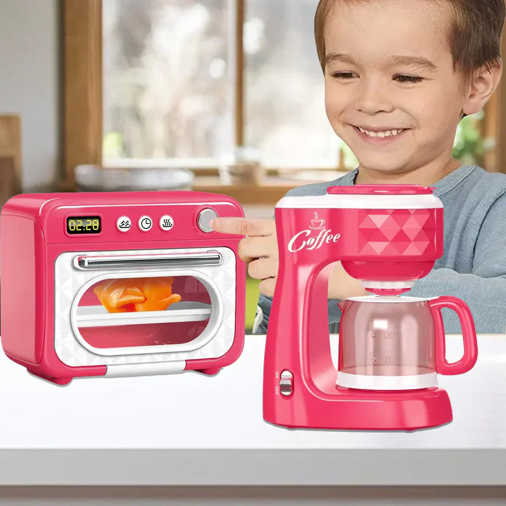 ماكينة صنع القهوة وفرن الميكروويف مع وعاء طهي للأطفال