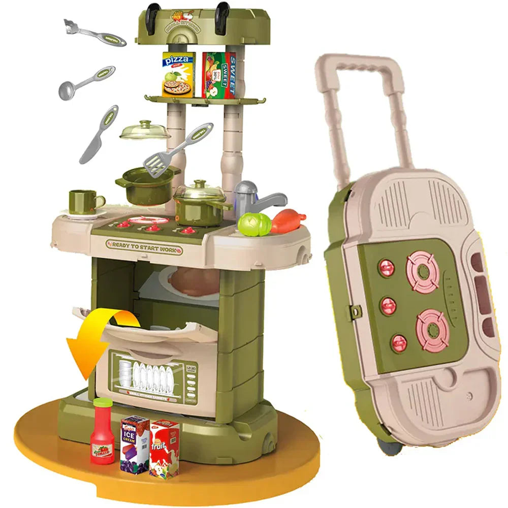تحتوي مجموعة اللعب هذه أيضًا على وظائف إضاءة وصوت تعمل بالبطارية على الموقد وموقد المطبخ، مما يخلق أصواتًا وأضواء واقعية سيحبها طفلك. كما تتضمن وظيفة محاكاة البخار التي ستنفث الهواء البارد من الموقد مما يمنح طفلك تجربة لعب أكثر واقعية! يمكن لطفلك الصغير حتى التسوق لشراء الطعام بنفسه باستخدام عربة التسوق اللطيفة المضمنة.