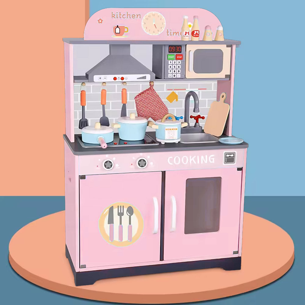 أحضري المتعة إلى غرفة طفلتك مع مجموعة المطبخ الخشبي الوردية المصممة خصيصًا لعشاق اللعب التخيلي! تتميز هذه المجموعة الرائعة بتفاصيل واقعية مثل الأضواء والصوت التفاعلي لمحاكاة تجربة الطهي الحقيقية.