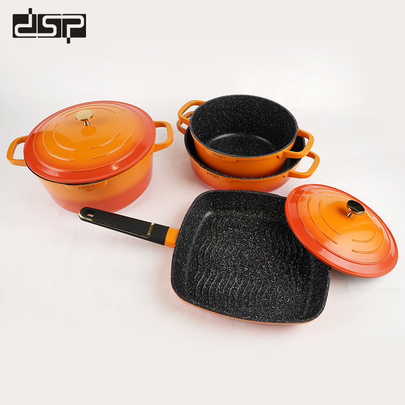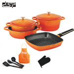 طقم قدور جرانيت مع ملاعق طبخ و قفاز فرن و مريول - 11 قطعة برتقالي DSP CA013