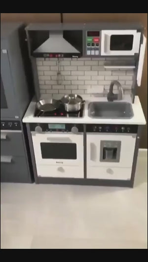ألعاب المطبخ، مجموعة لعب مطبخ الأطفال، مجموعة طبخ مع ثلاجة كبيرة باللونين الأبيض والرمادي