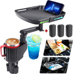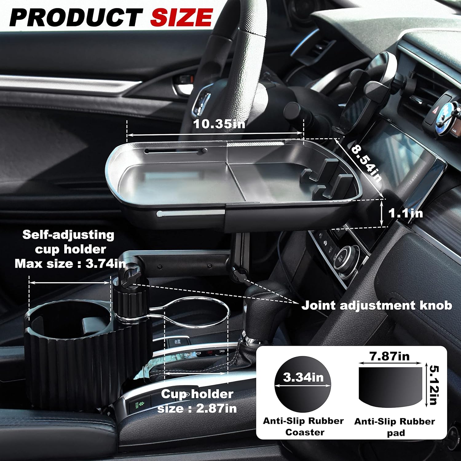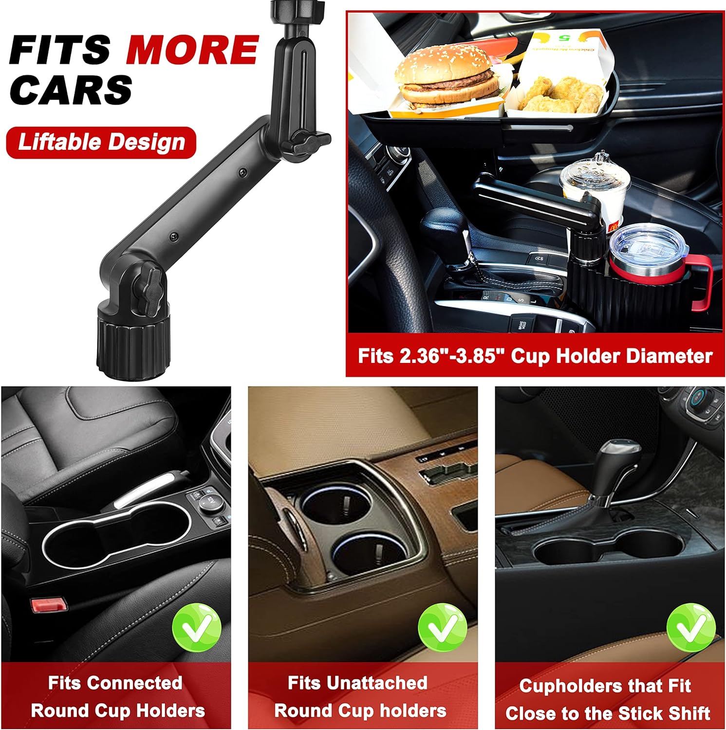 Aucurwen صينية حامل أكواب للسيارة , حامل أكواب للسيارة قابلة للتوسيع ، صينية طاولة طعام سيارة قابلة للتوسيع 3 في 1 لتناول الطعام - Road Trip Essentials ، أدوات السيارة للرجال ، إكسسوارات السفر للسيارة تناسب 12-40 أونصة