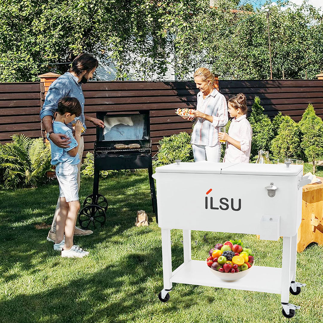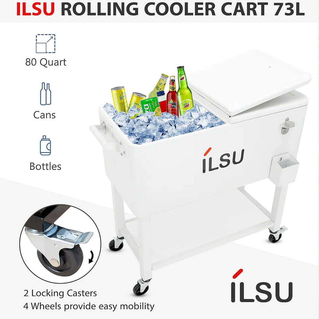 صندوق وعربة تبريد متحرك بسعة 73 لتر من ILSU مع اربع عجلات متحركة مع قفل العجل وحامل ستاند في الاسفل وعربة تبريد للمشروبات والحفلات وحمام السباحة والحديقة