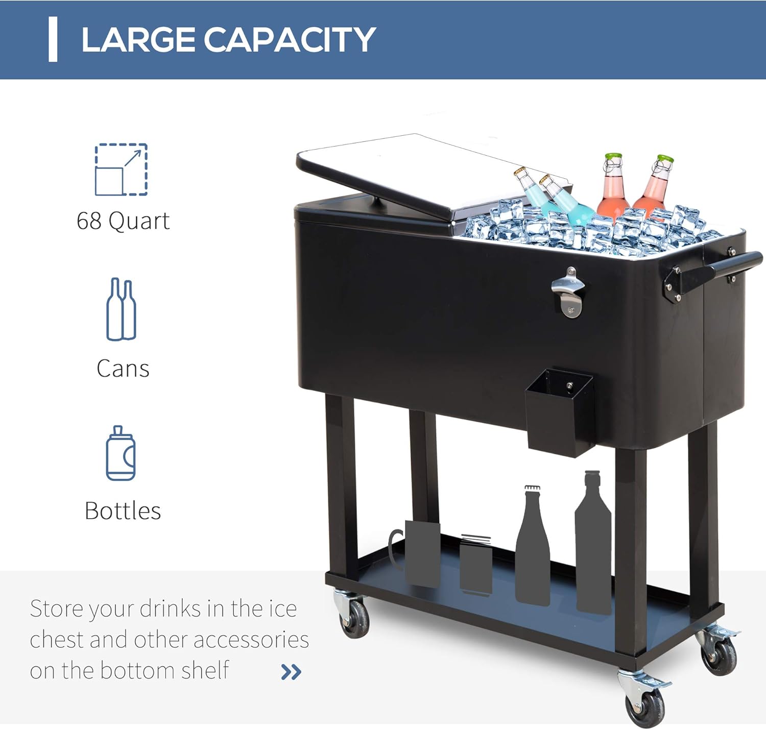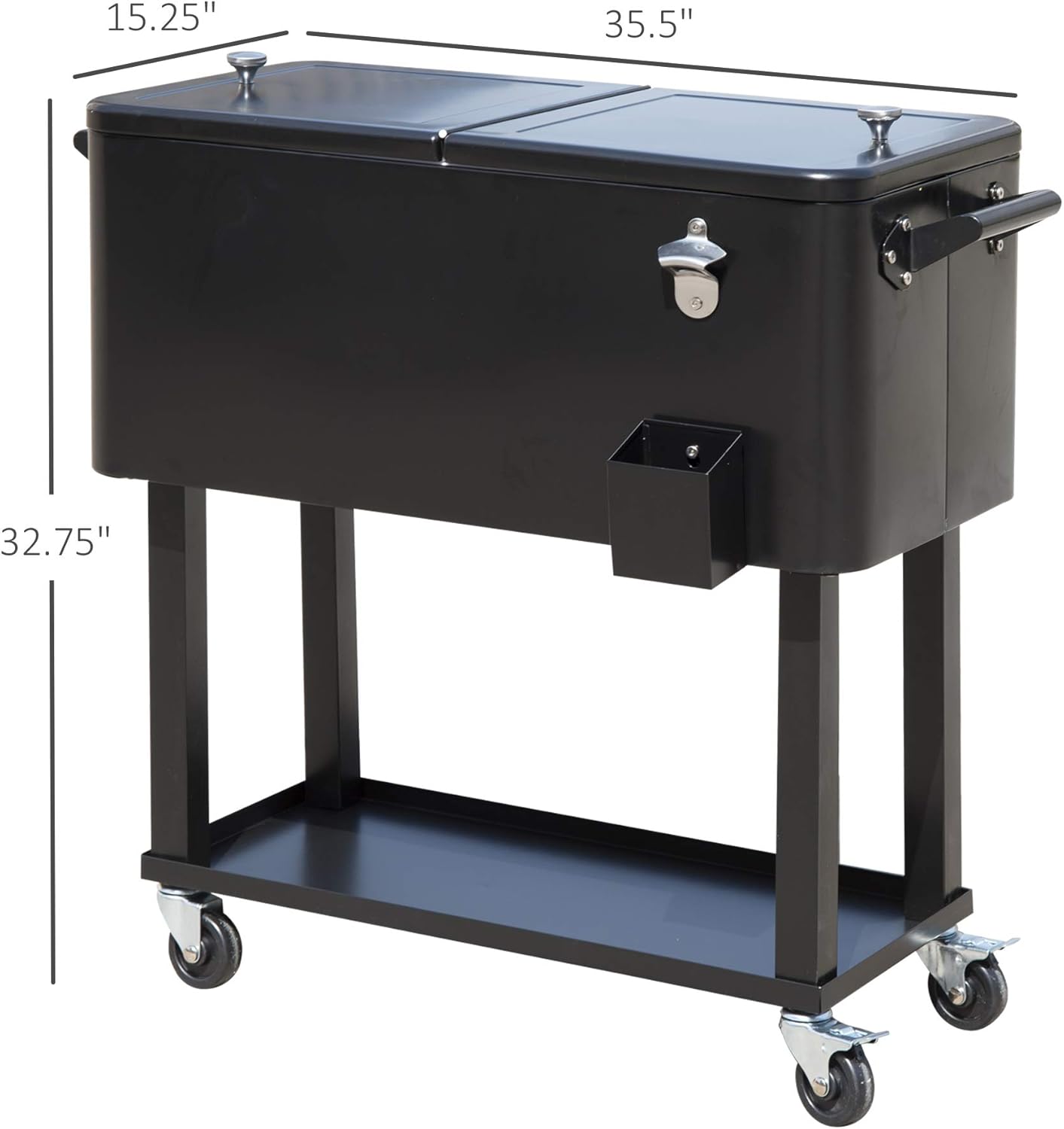 اصطحب حفلتك معك أينما ذهبت مع عربة التبريد المتنقلة من Outsunny. مصنوعة من فولاذ متين بلمسة نهائية أنيقة وملونة، إنها الرفيق المثالي لأي تجمع خارجي. تتميز هذه العربة، بسعة 80 كوارت (20 جالونًا)/ 73 لتر ، بفتحتين، مما يسهل الوصول إلى كلا الجانبين، وتتميز بمقابض مريحة على كل جانب. تتميز عربتنا الخارجية بأربع عجلات تسمح لك بحملها معك أينما ذهبت، ثم تثبيتها في مكانها بفضل عجلتين قابلتين للقفل.