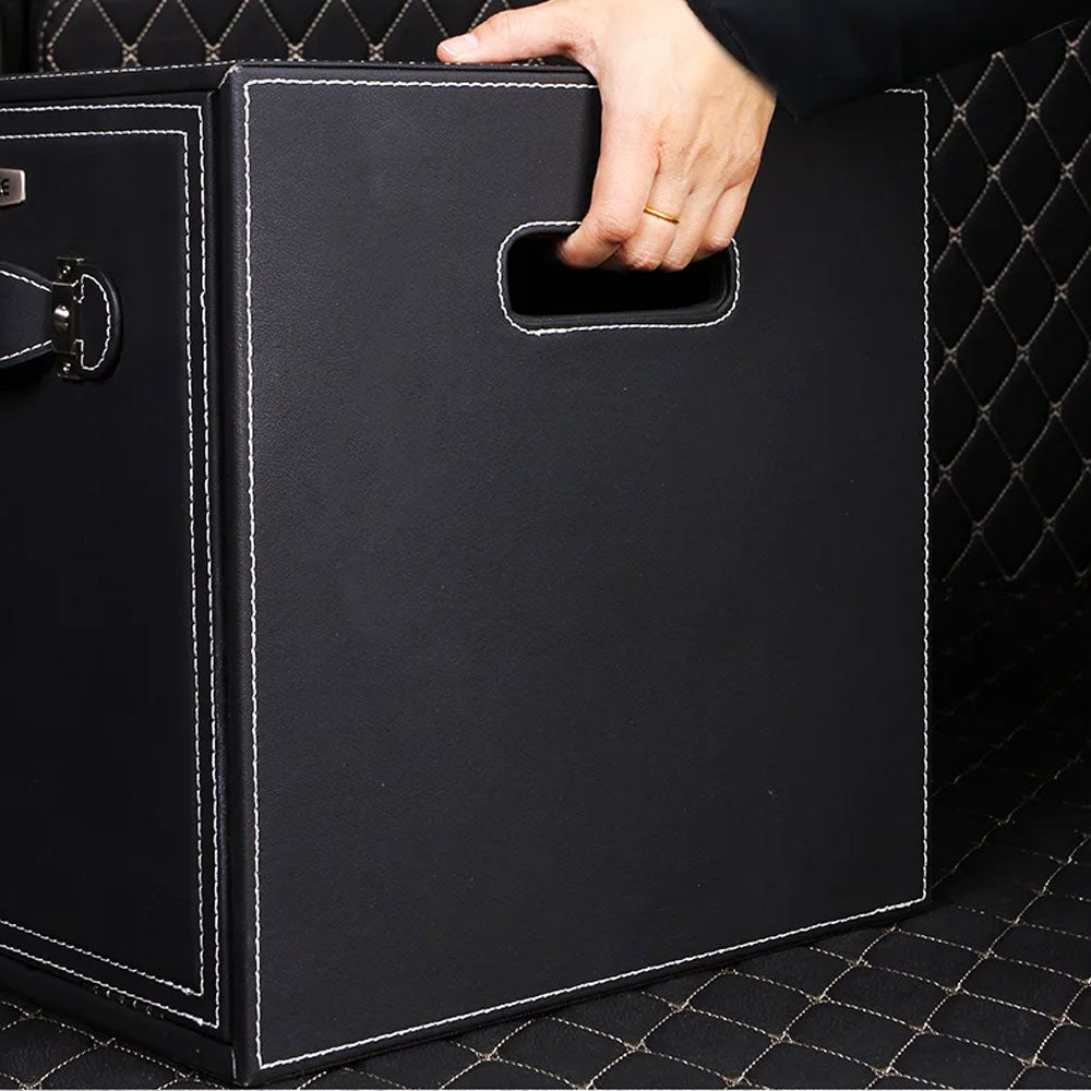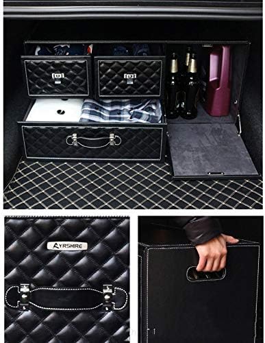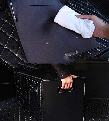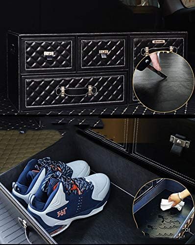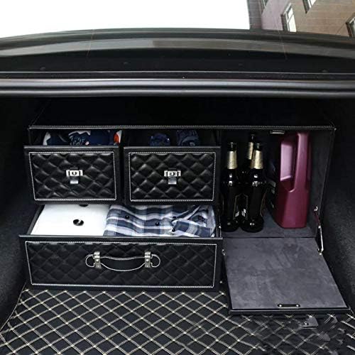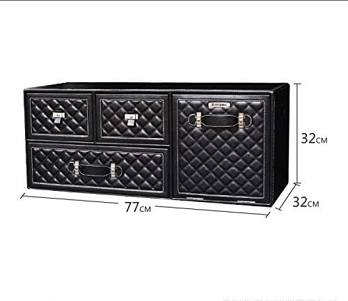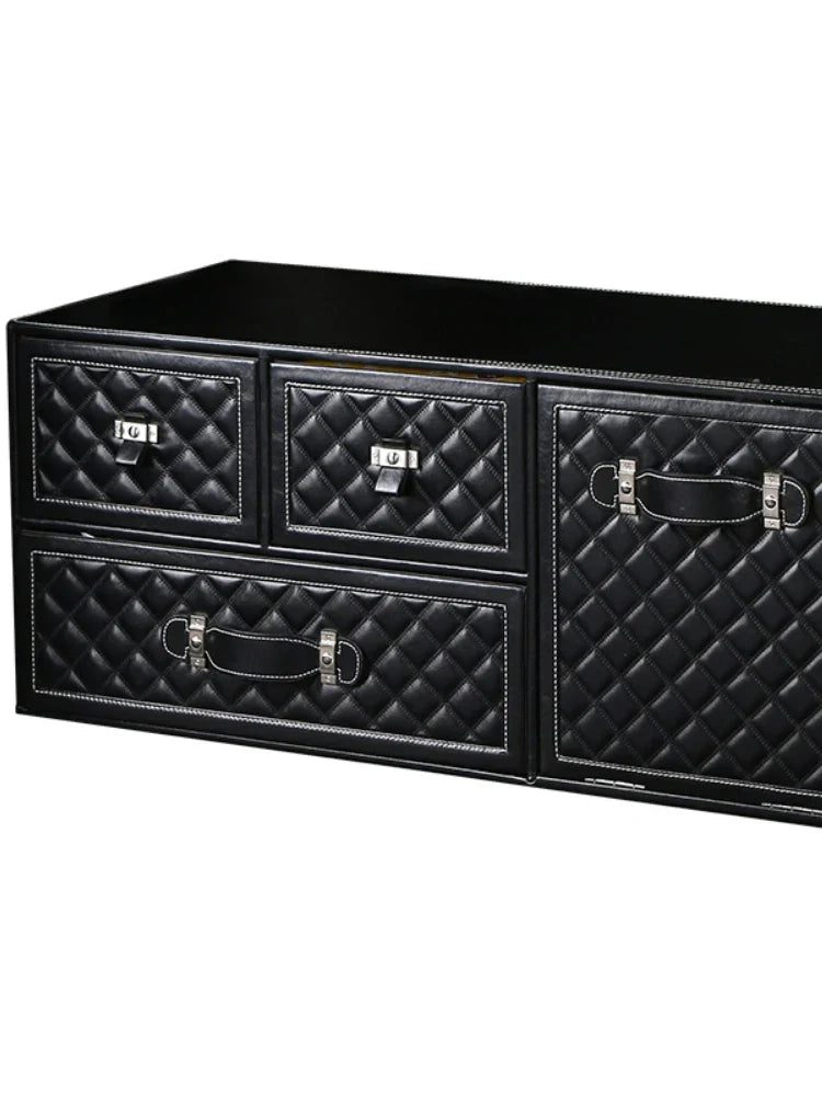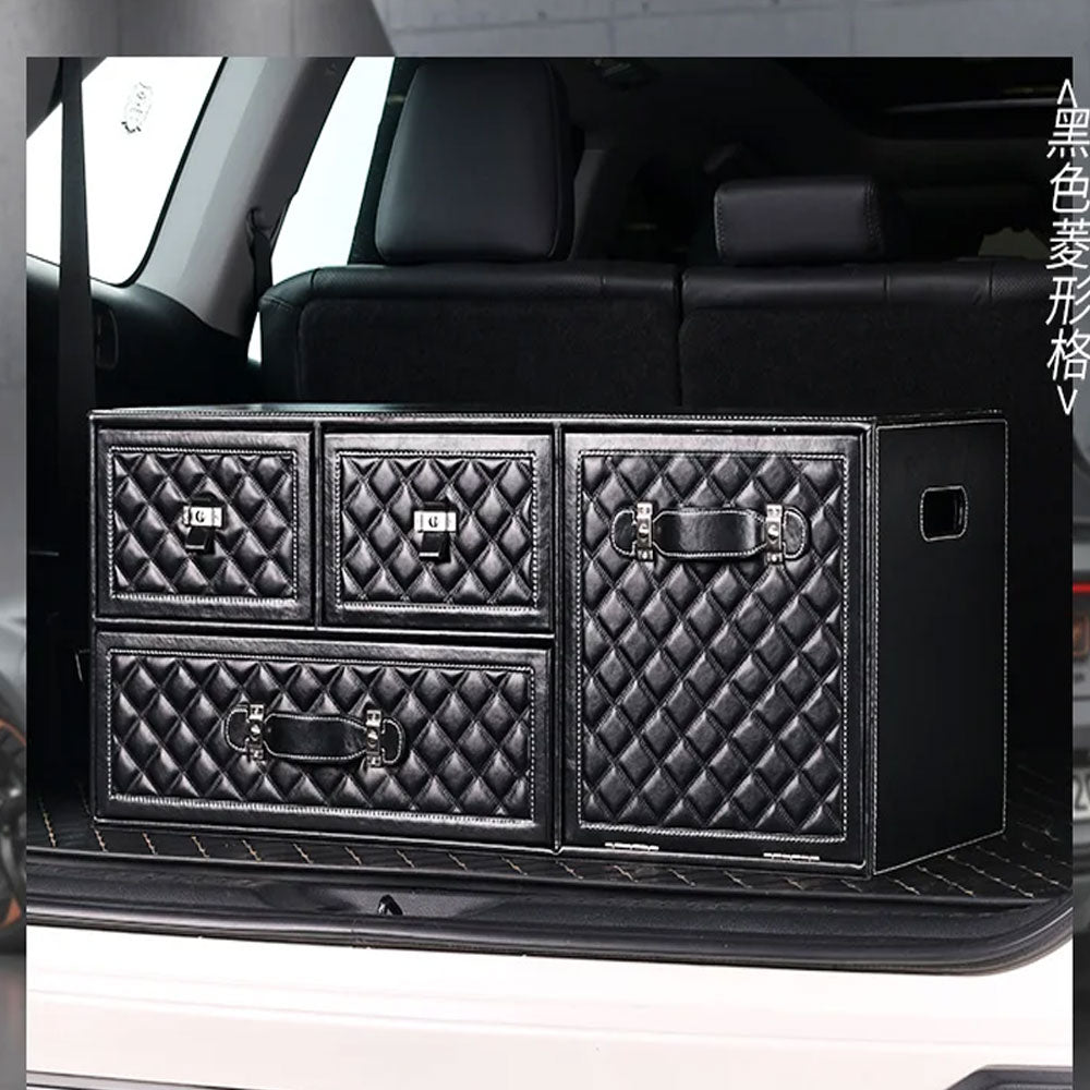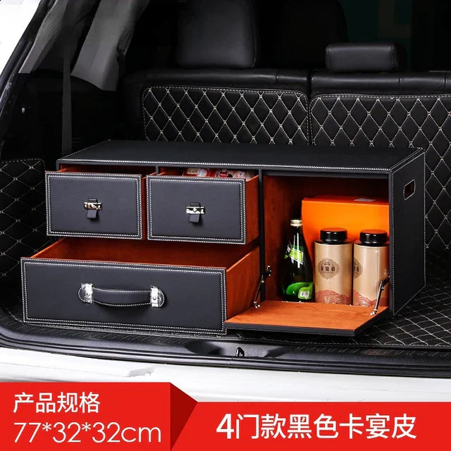 صندوق قوي لتخزين الأمتعة والأغراض المختلفة للسيارة مصنوع من الجلد الفاخر مع 4 أدراج للتخزين متعدد الوظائف وقفل بكلمة مرور
