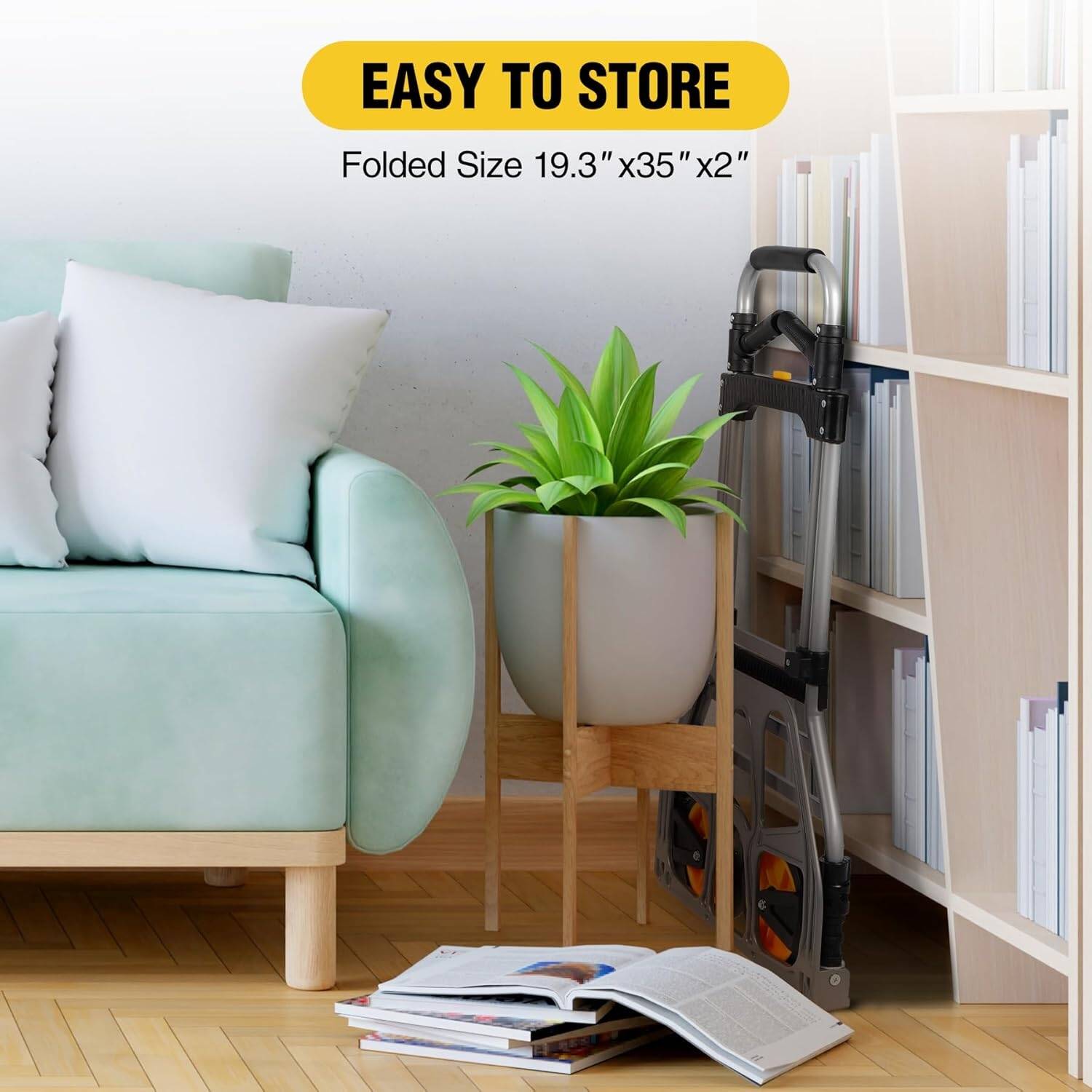 - مساحة صغيرة مشغولة وسهلة الطي يمكن طي العربة، وحجمها القابل للطي هو 19.3 × 35 × 2. يمكنك وضعها في زاوية داخلية أو عربة. لن تشغل مساحة كبيرة. عندما تريد استخدامها، يستغرق الأمر بضع ثوانٍ فقط لفتحها بسهولة. لا يتطلب تجميعًا.
