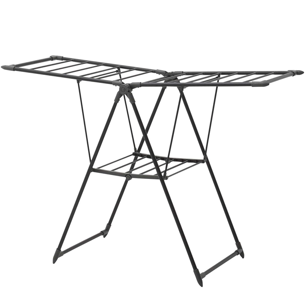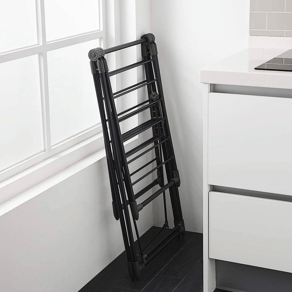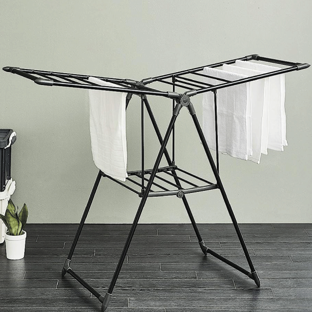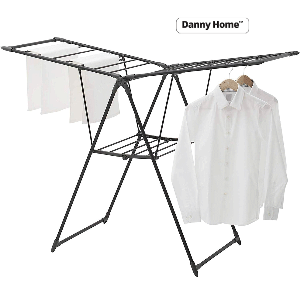 حامل تجفيف الملابس القابل للطي من داني هوم أنابيب قوية ومتينة مع طلاء مسحوق مقاوم للصدأ | حامل تجفيف الملابس | رفوف ملابس شديدة التحمل أسود