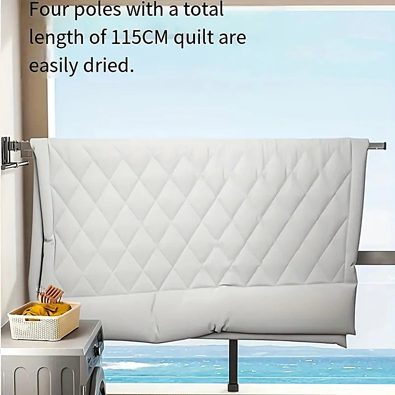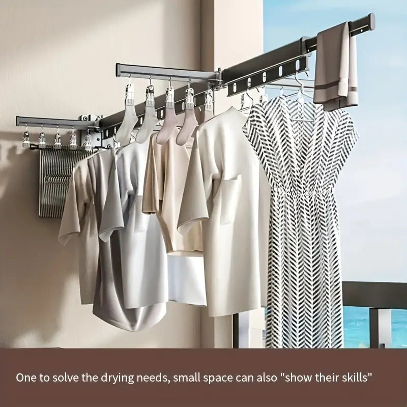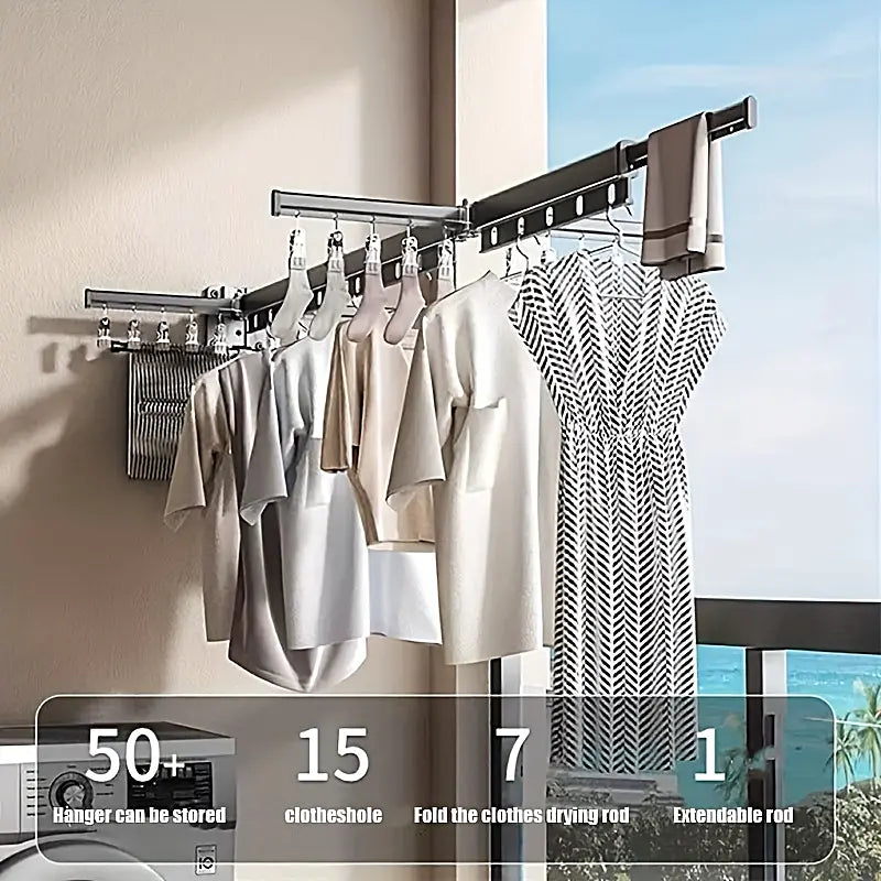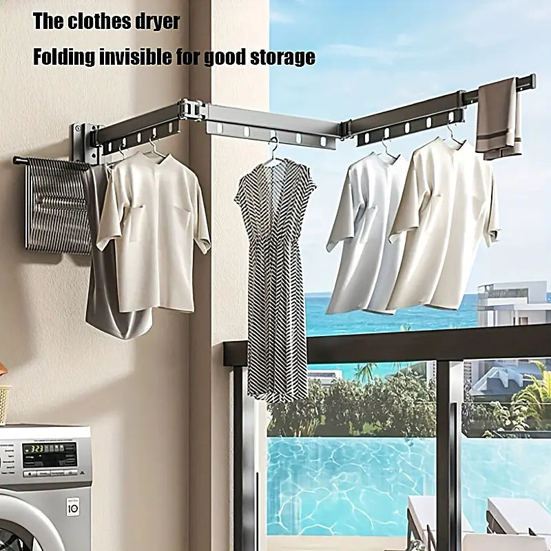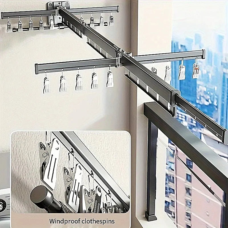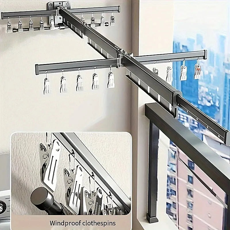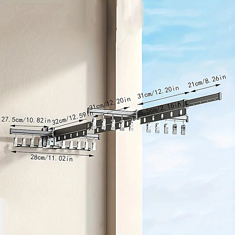 رف تجفيف الملابس المثبت على الجدار لتوفير المساحة - قابل للطي والتمديد، مثالي للشرفات والاستخدام الداخلي، بلون الجنوميتال