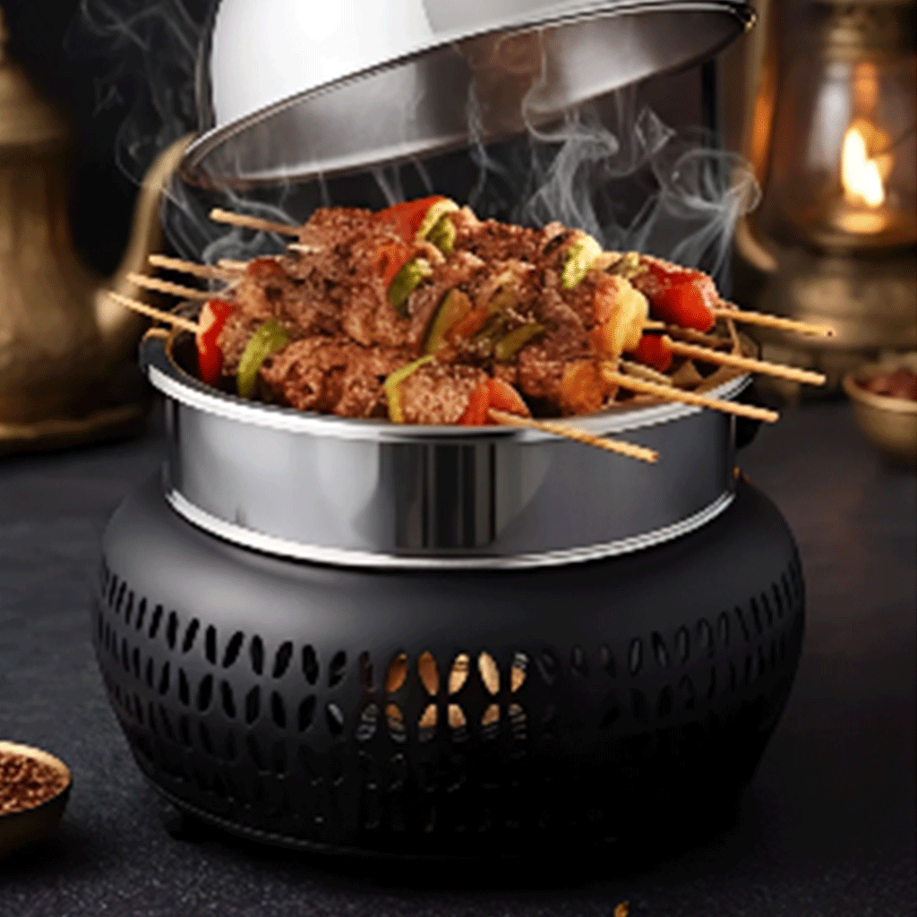 • حفظ الطعام دافئًا: يساعد الهيكل المعدني والتصميم المدروس في الحفاظ على الطعام دافئًا لفترات طويلة، مما يجعله مثاليًا للاستخدام في الحفلات والمناسبات.