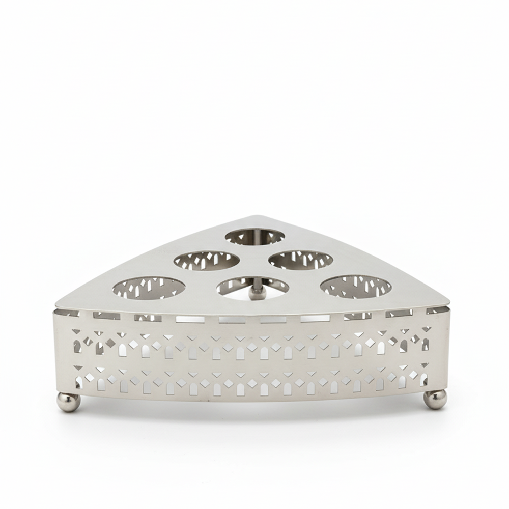 مصنوعة من معدن مقاوم للصدأ بلمسة فضية لامعة، وتتميز بتصميم أنيق يسهل حمله وثباته أثناء التقديم.
