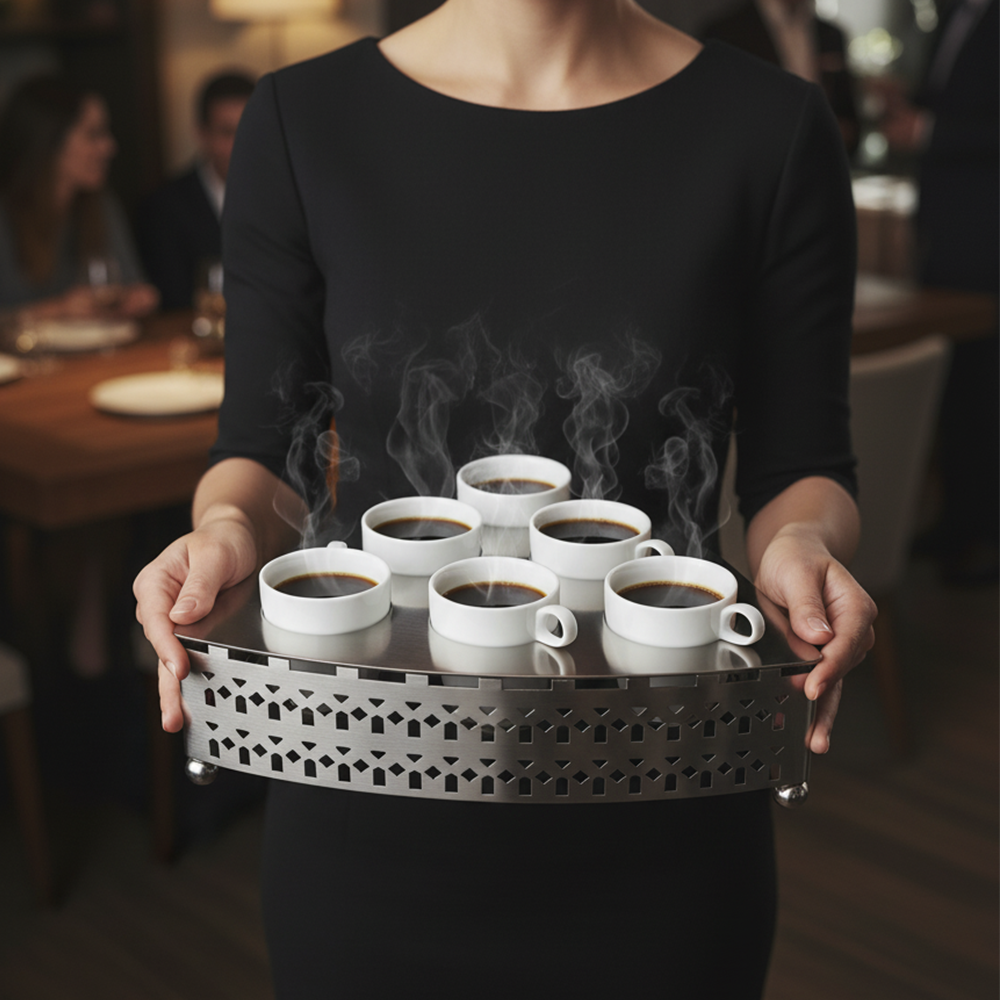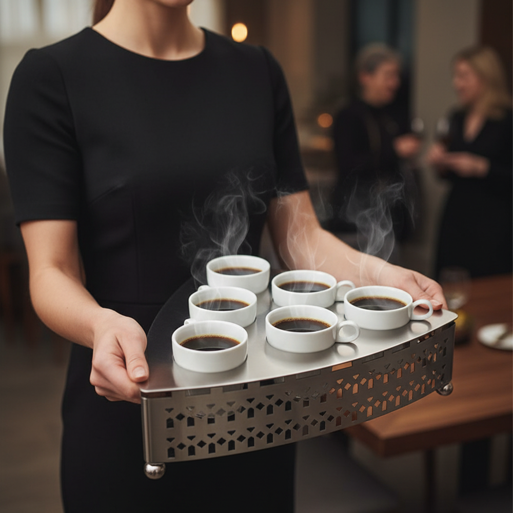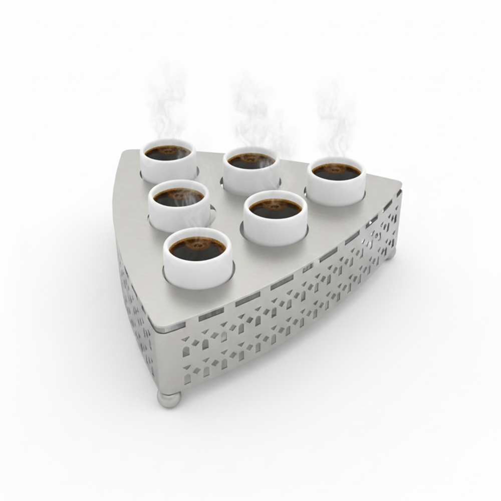 مناسبة لتقديم القهوة العربية أو التركية في المجالس والمناسبات الرسمية، وتُضفي لمسة من الفخامة على كل لحظة ضيافة.
