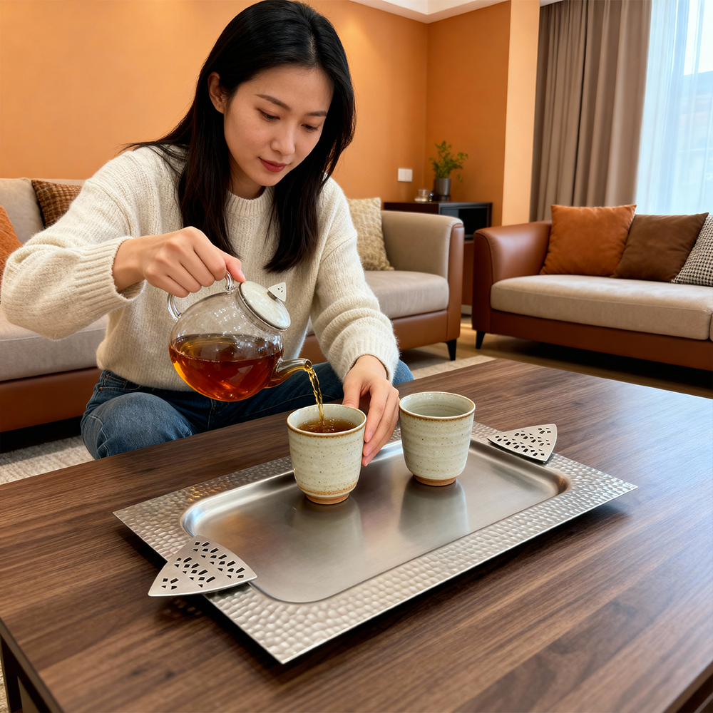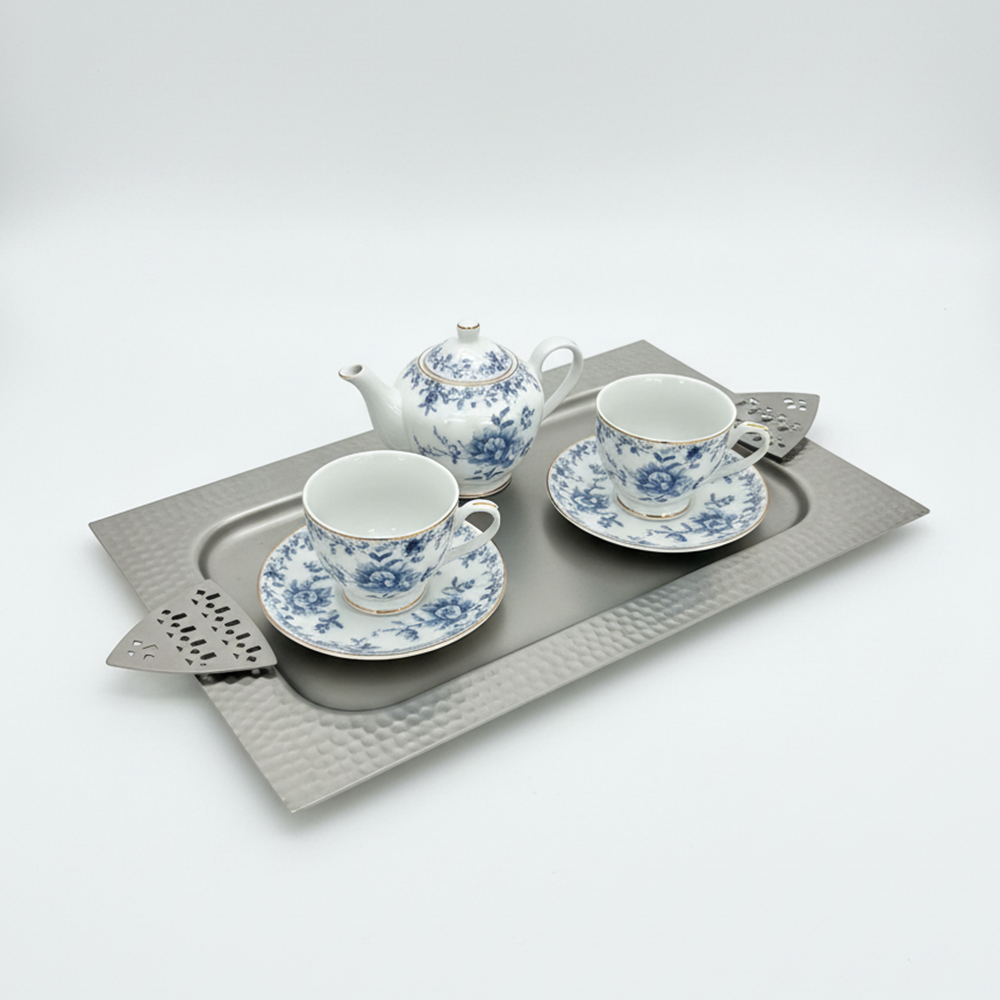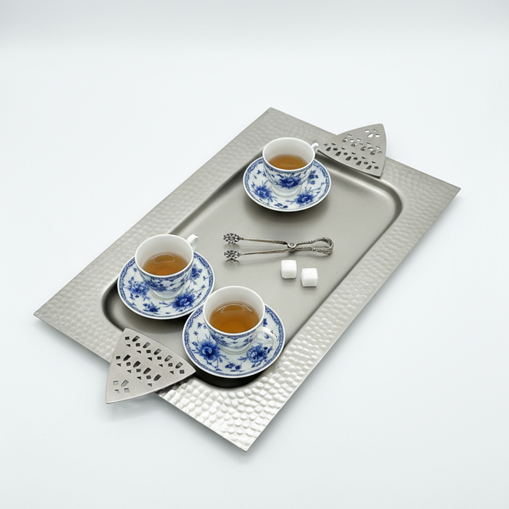 مثالية لتقديم القهوة العربية، الحلويات، أو التمور بأسلوب يجمع بين الأصالة والحداثة. سهلة التنظيف وتدوم طويلاً بفضل جودتها العالية.