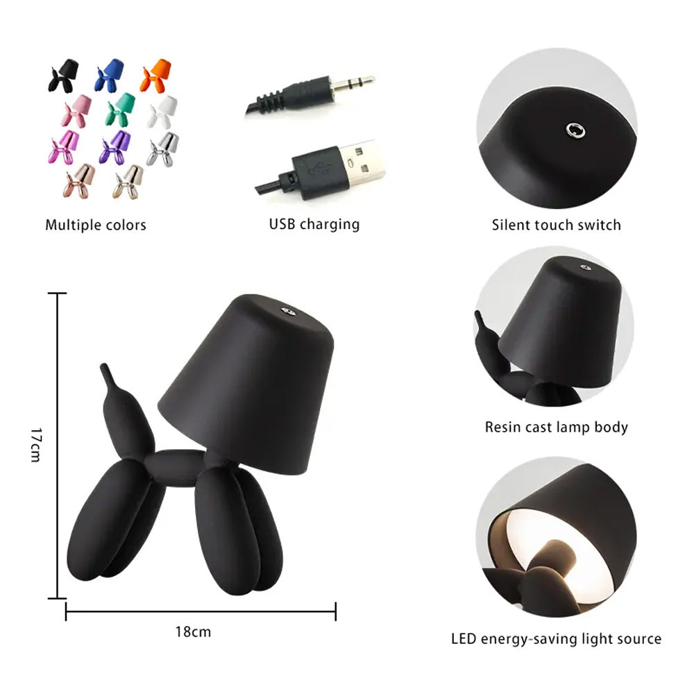 بالون الكلب مصباح LED محمول بجانب السرير قابل لإعادة الشحن