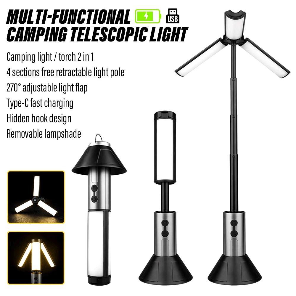 مصباح تلسكوبي للتخييم متعدد الوظائف