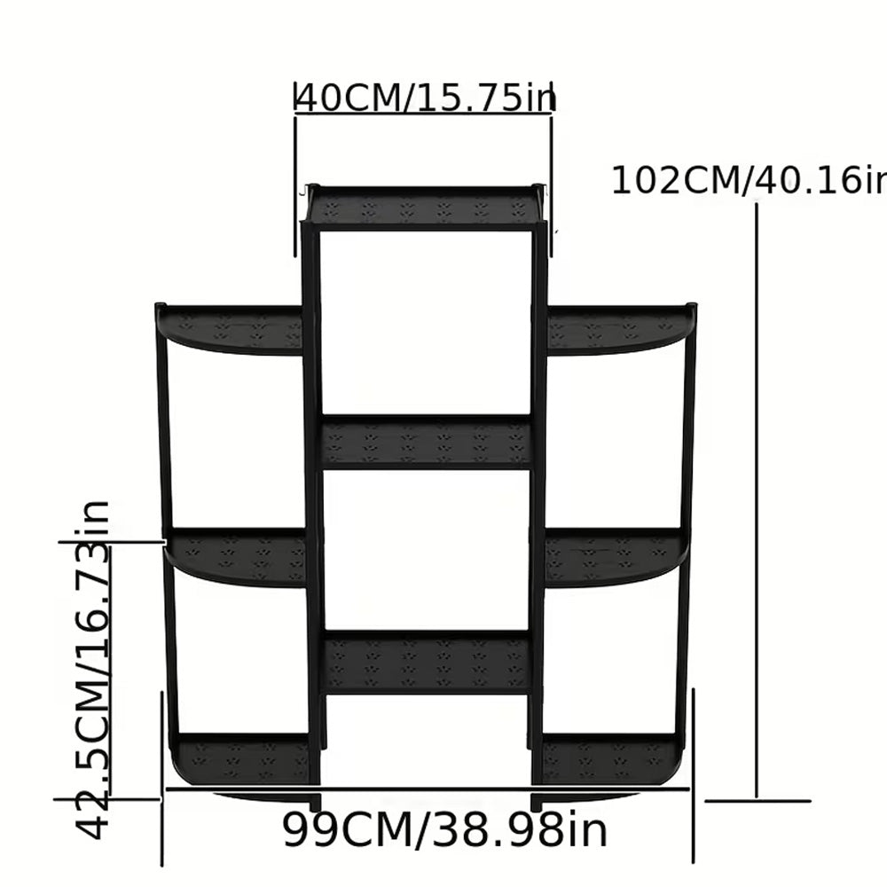 أضفِ لمسةً جماليةً إلى حديقتك الداخلية مع حامل النباتات الواسع هذا، والمكون من 9 رفوف، والمصمم بإطار فولاذي متين وصواني بلاستيكية متينة مقاومة للماء. يبلغ عرضه 99 سم وارتفاعه 102 سم، ويوفر رفوفًا متعددة المستويات لعرض مجموعة متنوعة من النباتات المزروعة في أصص، والعصاريات، والأعشاب، والقطع الزخرفية.