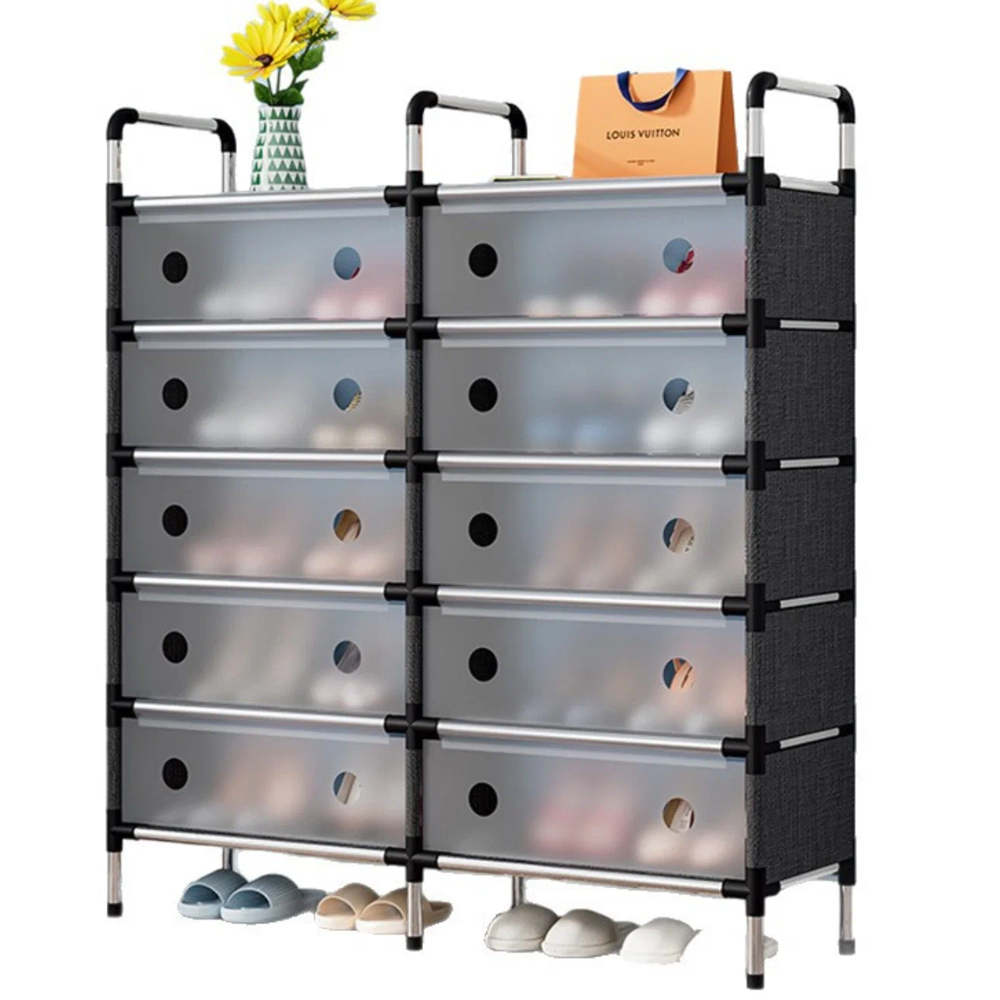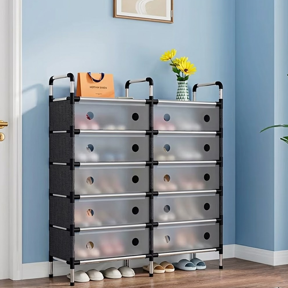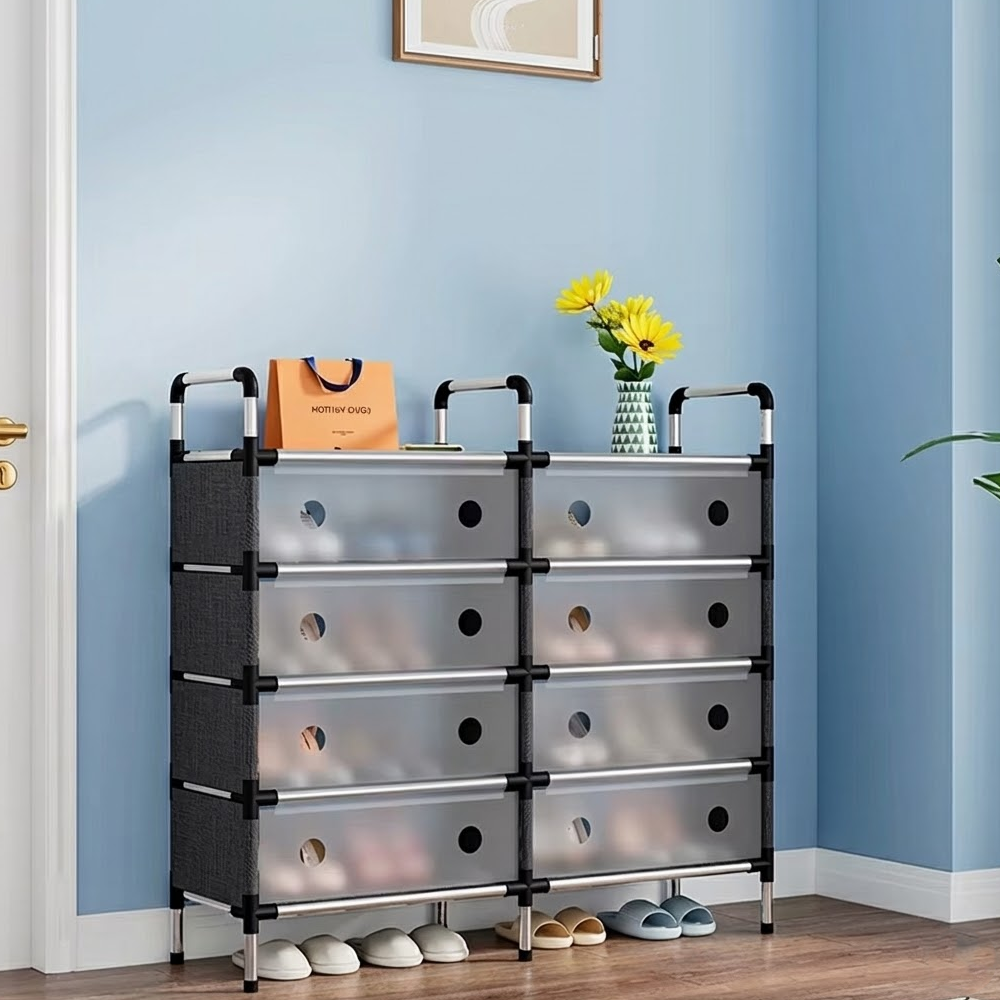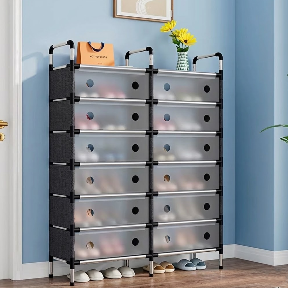 خزانة أحذية متعددة الطبقات بواجهات سحب شفافة – تصميم عصري موفر للمساحة