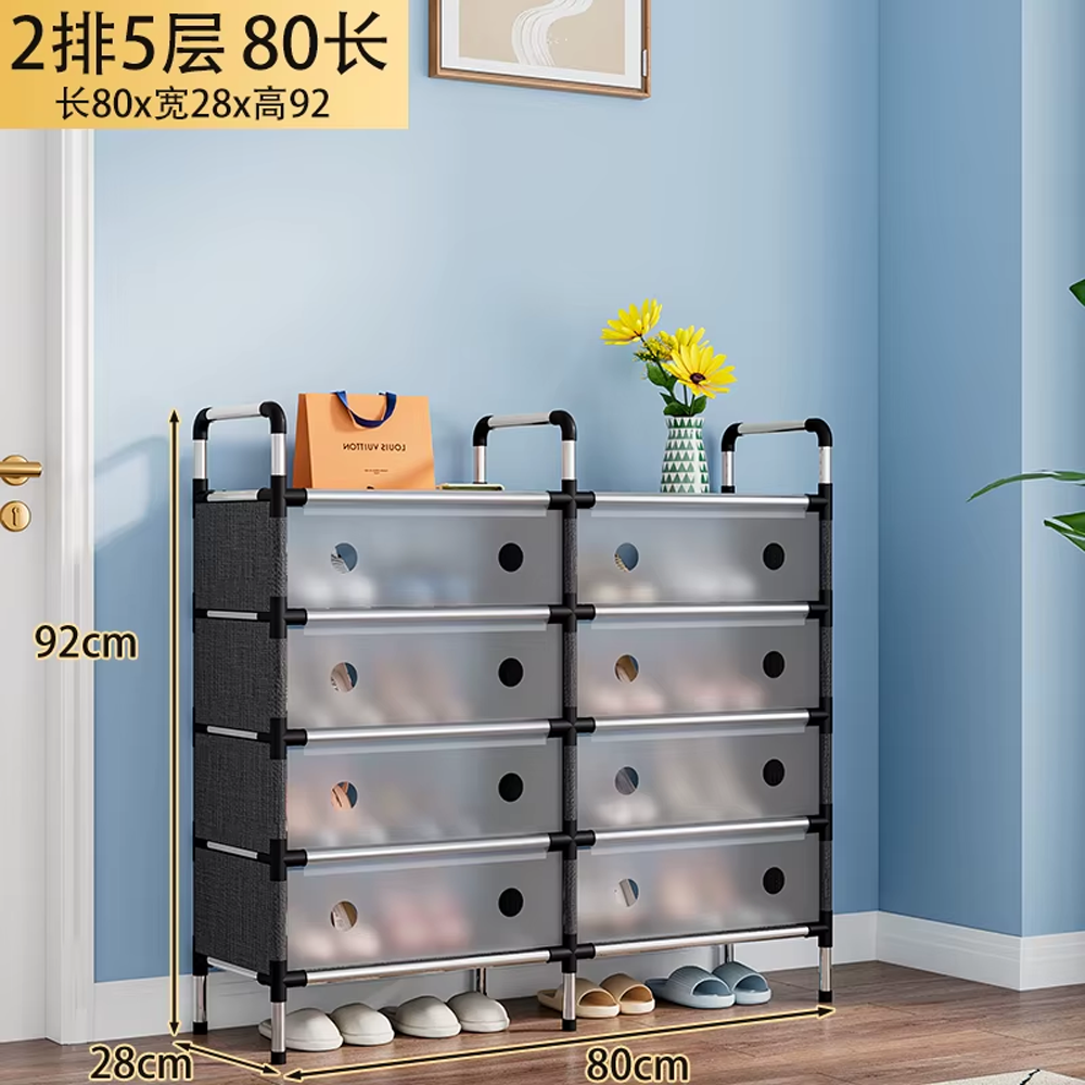 امنح مدخل منزلك أو غرفة نومك ترتيباً أنيقاً وعملياً مع خزانة الأحذية متعددة الطبقات ذات التصميم العصري المتين. تأتي الخزانة بواجهات شفافة قابلة للسحب، مما يسمح لك برؤية الأحذية بسهولة دون الحاجة لفتح كل درج، بالإضافة إلى فتحات دائرية للتهوية تمنع الروائح وتبقي الأحذية منتعشة.