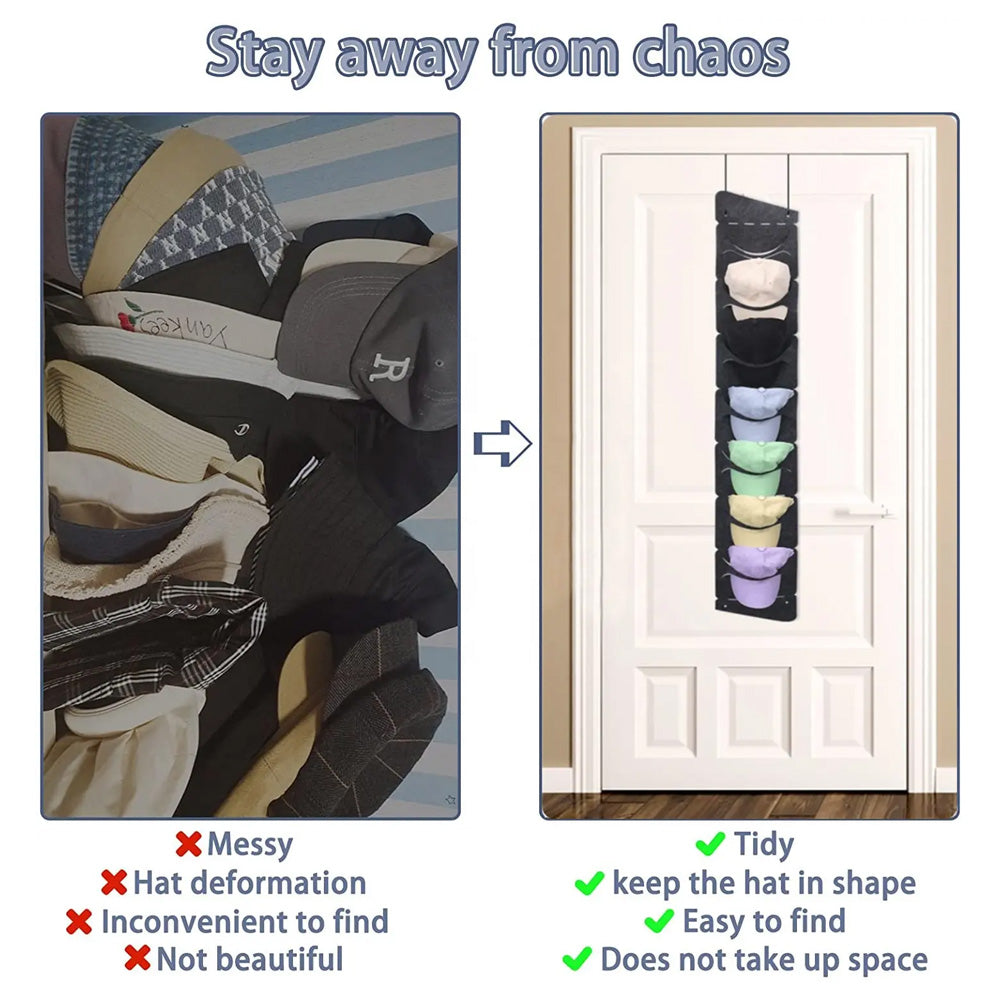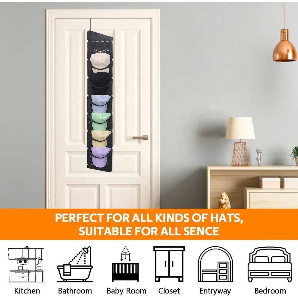 7 منفصلة: يمكن لكل خلية تخزين قبعات متعددة. يمكن لمنظم قبعات الكرة أيضًا حمل القبعات المسطحة أو المنحنية بسهولة ويضمن عدم سقوط قبعاتك عند فتح وإغلاق الباب.