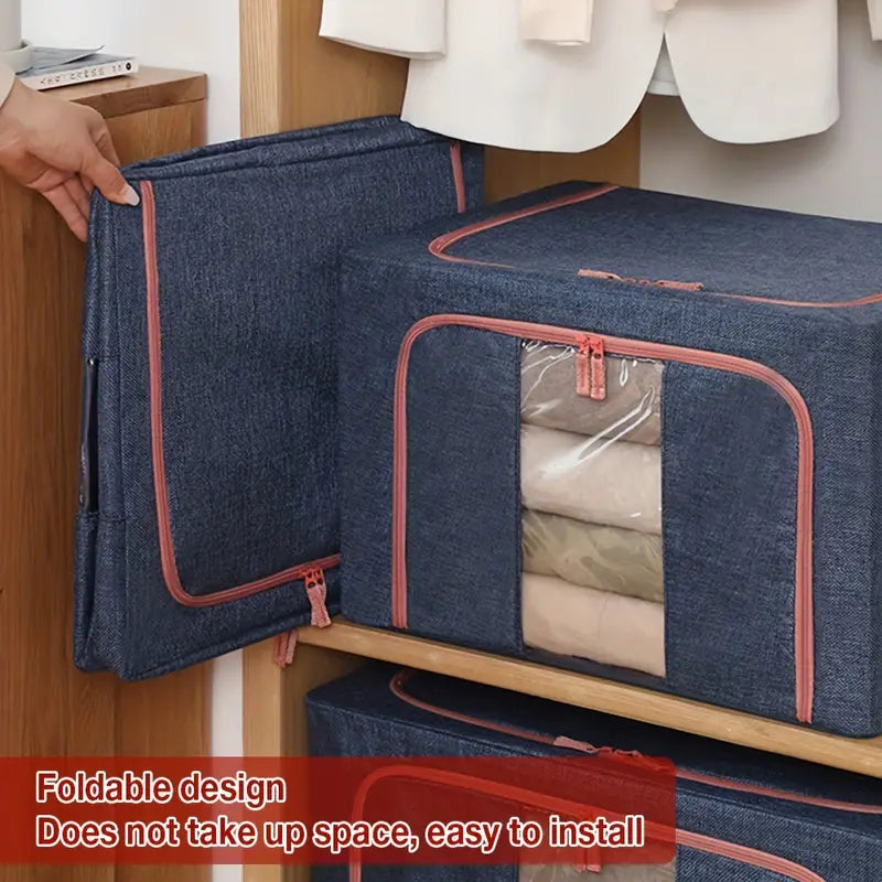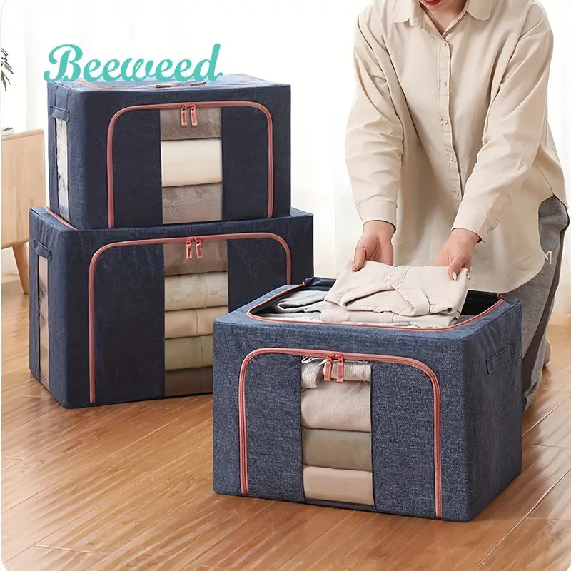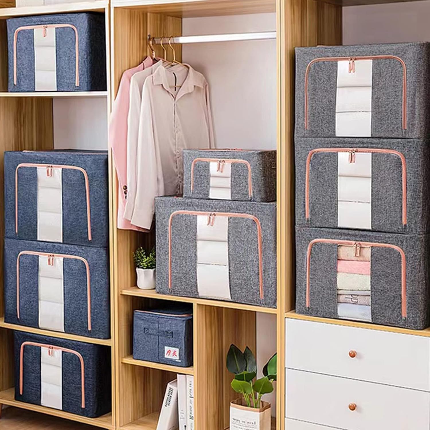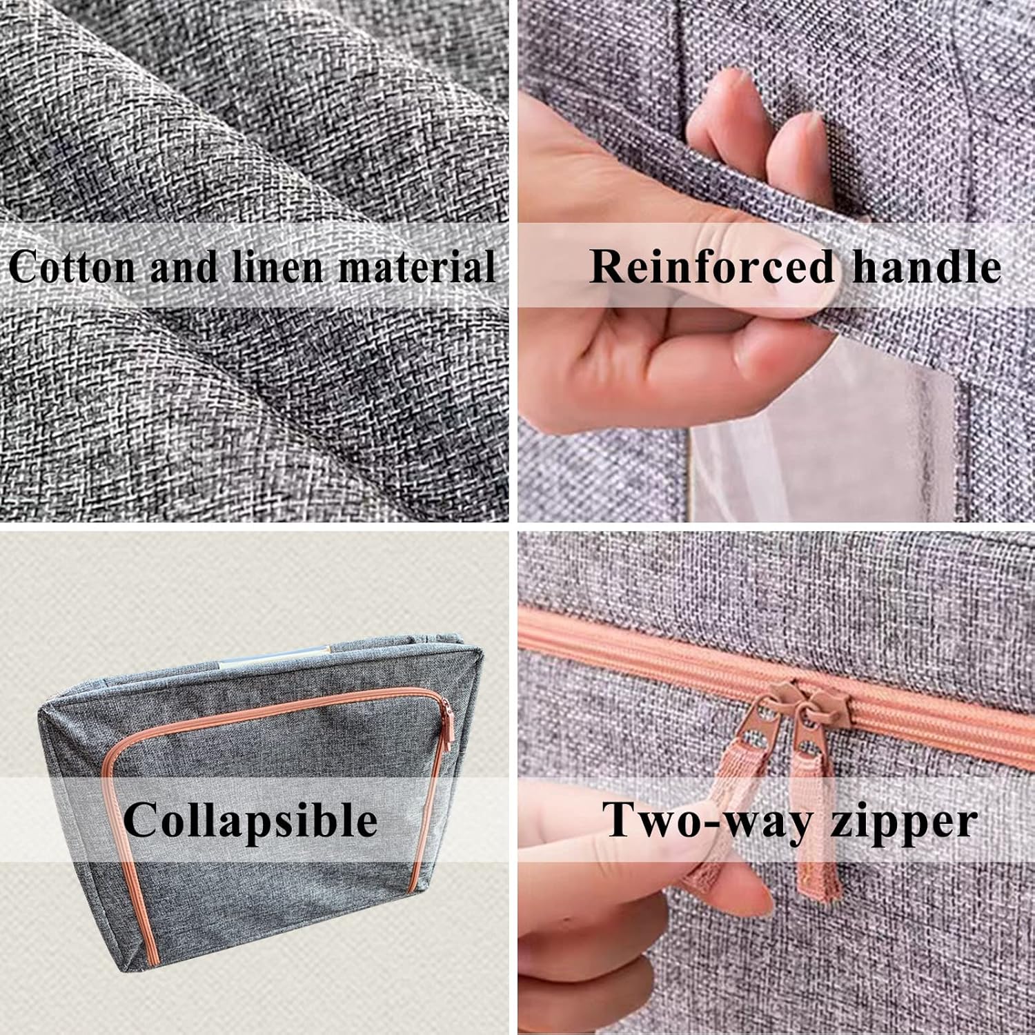 حقيبة تخزين ذات سعة كبيرة مع مقابض، صندوق تخزين الملابس المحمول مع نافذة للملابس واللحاف ومنظم خزانة الملابس المنزلية، منظم موفر للمساحة للخزانة وغرفة النوم والمنزل والنوم وإكسسوارات غرفة النوم