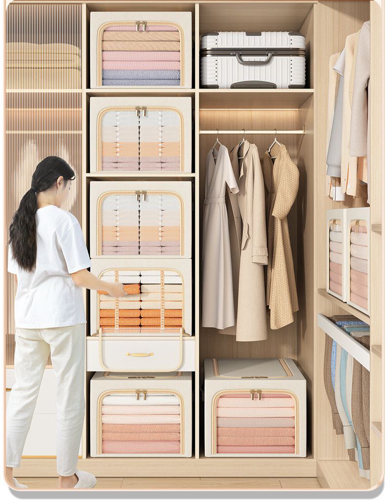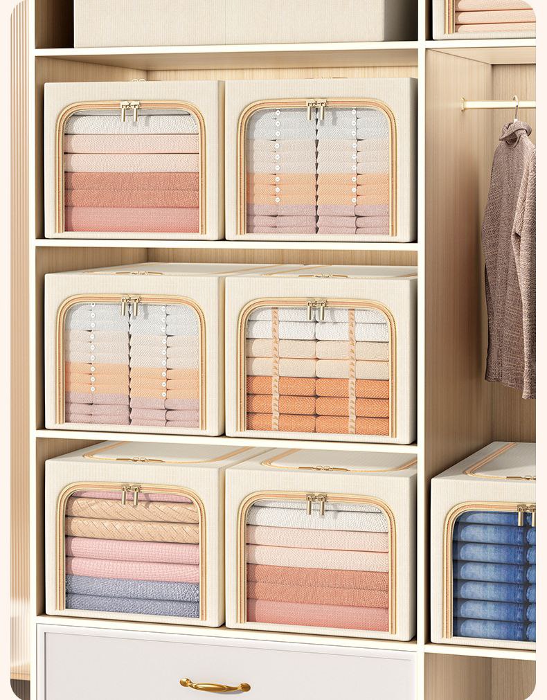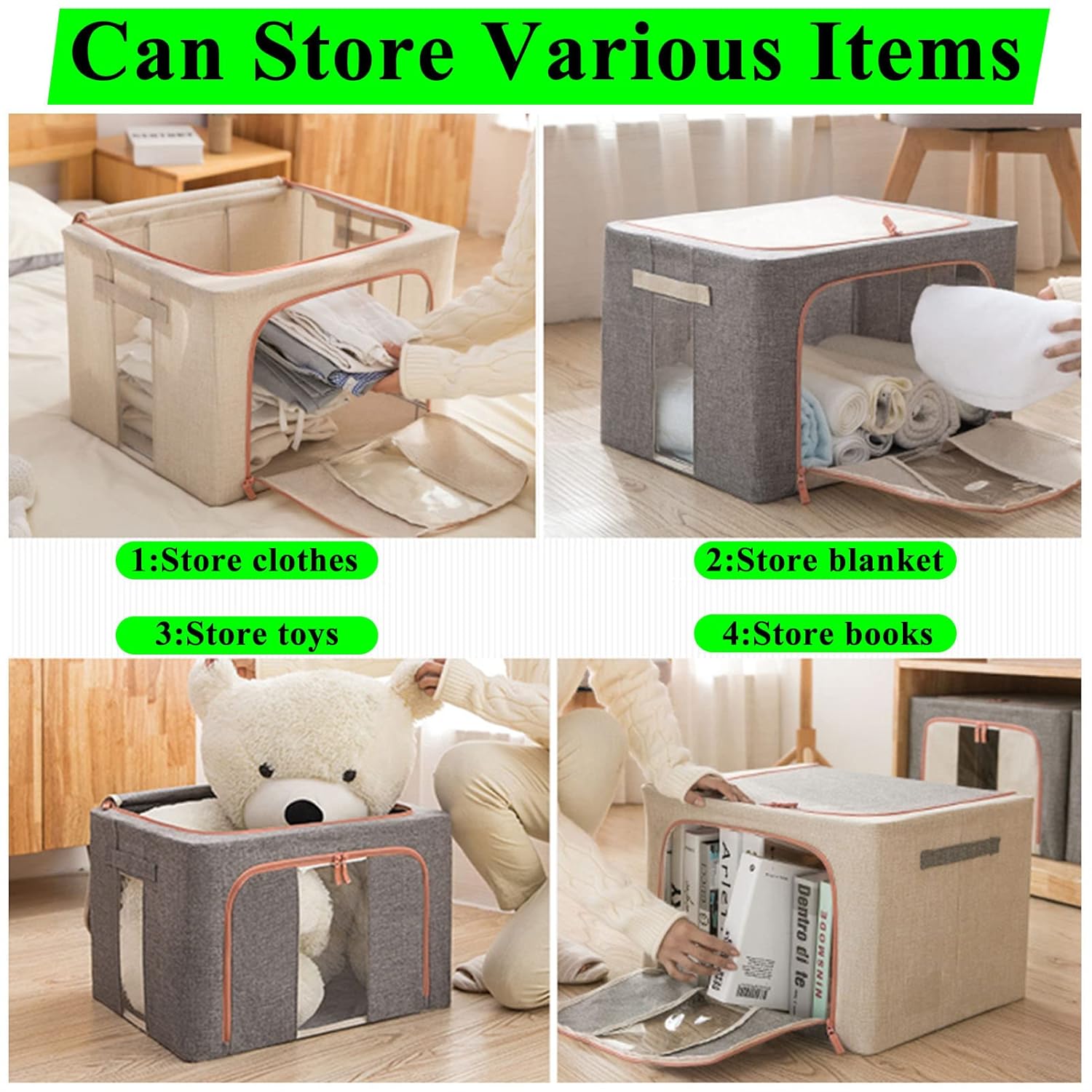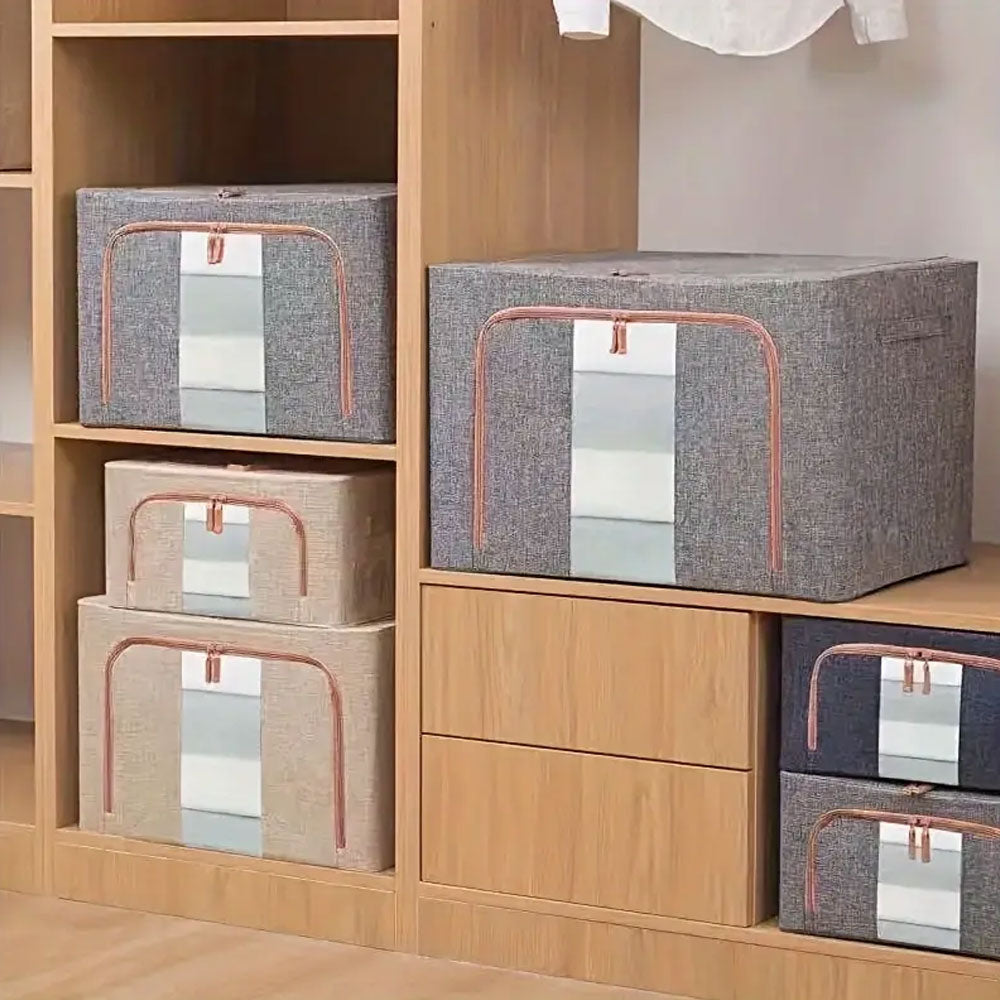 حقيبة تخزين ذات سعة كبيرة مع مقابض، صندوق تخزين الملابس المحمول مع نافذة للملابس واللحاف ومنظم خزانة الملابس المنزلية، منظم موفر للمساحة للخزانة وغرفة النوم والمنزل والنوم وإكسسوارات غرفة النوم