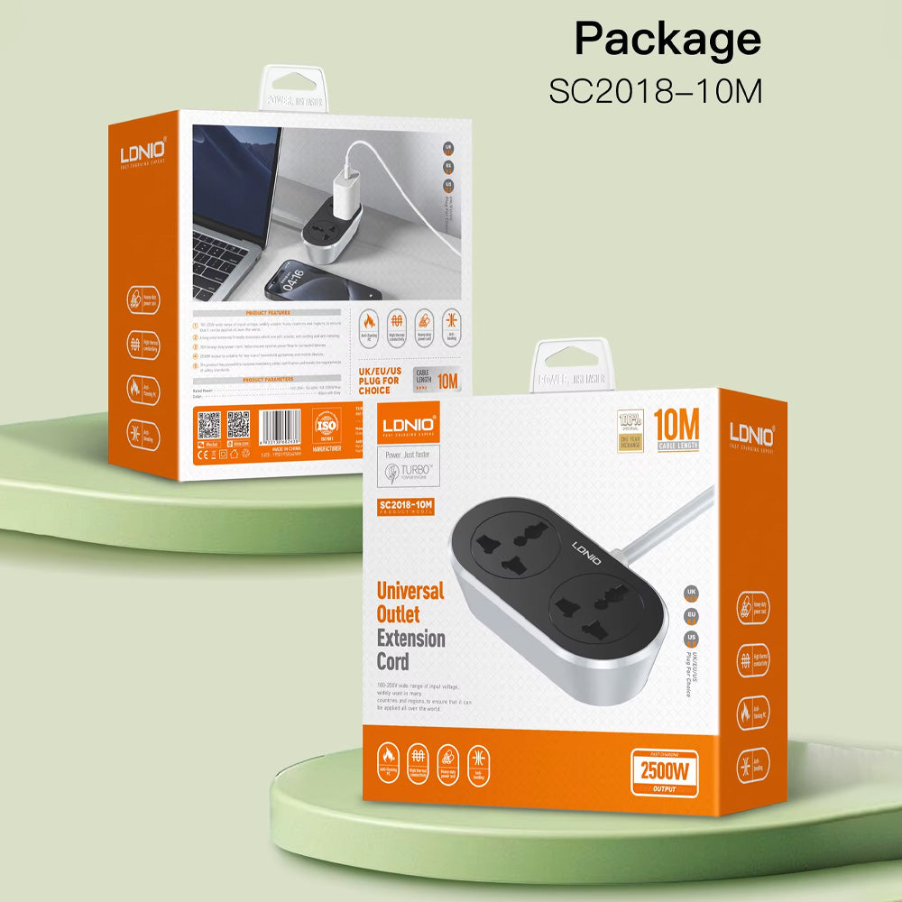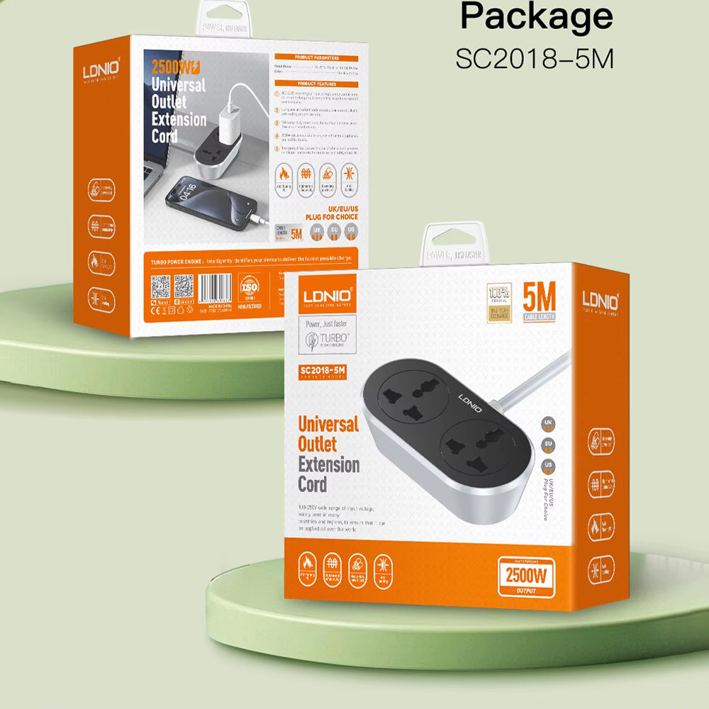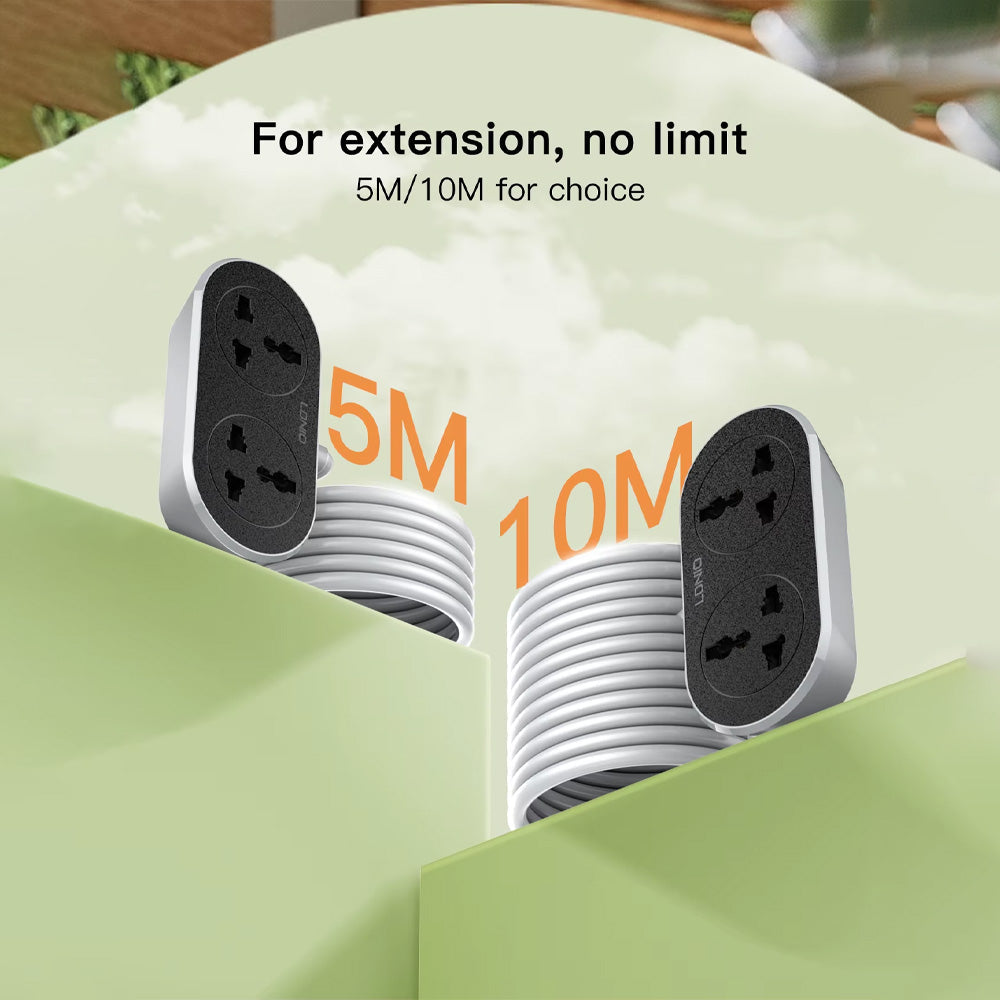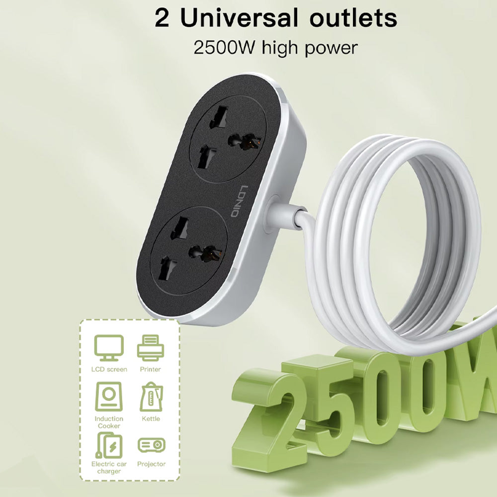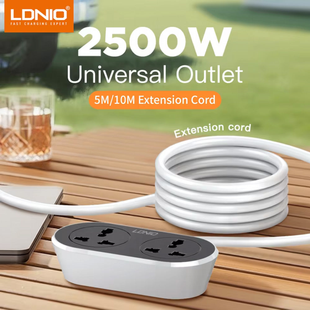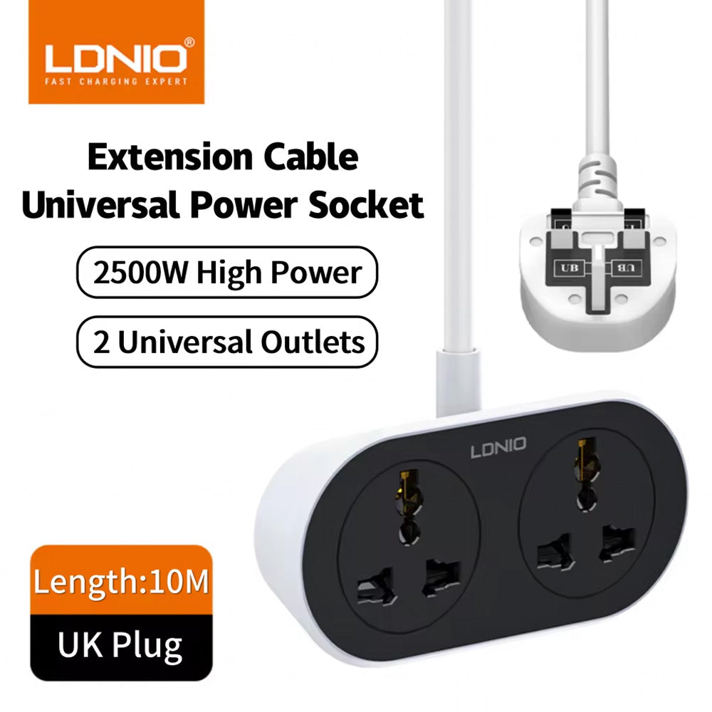 مشترك كهرباء مع واير تمديد شريط الطاقة LDNIO بقوة 2500 وات ، مقابس داخلية وخارجية، المملكة المتحدة، نوع W، 5 م، 10 م