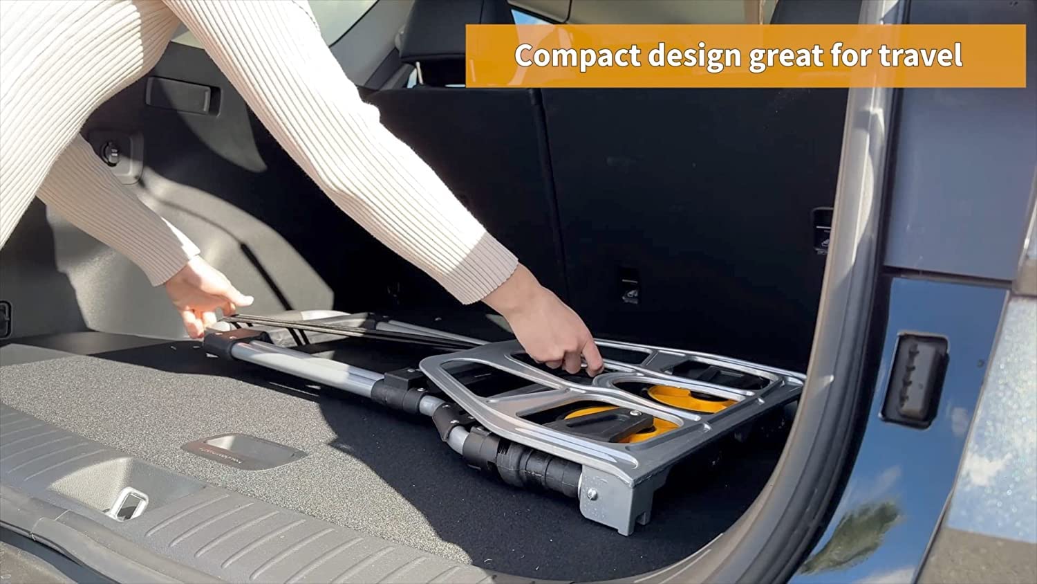 - حجم صغير قابل للطي - عربة أمتعة محمولة ذات وزن خفيف وتصميم صغير يجعلها سهلة الاستخدام والتخزين. بأبعاد غير قابلة للطي 39.35 انش × 15.75 انش × 15.35 انش، يمكن طيها بشكل مسطح بحيث تشغل مساحة صغيرة جدًا بسمك 2 انش فقط عند عدم الاستخدام. استخدم القدم لرفع المنصة لأعلى وستثبت العجلات في وضع التخزين. يمكنك طيها بسهولة ووضعها في صندوق أي سيارة. المقاس عند الطي فقط 15.38×24.8×1.97 انش