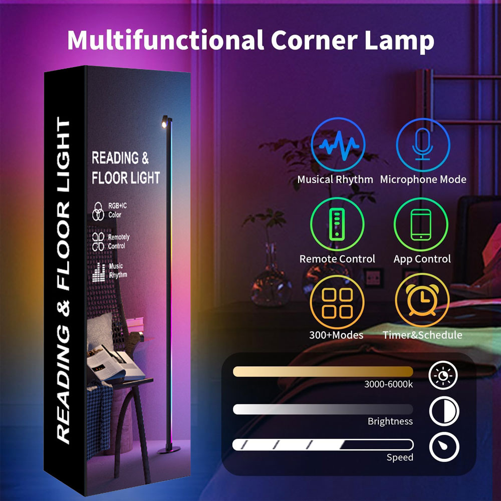 مصباح أرضي زاوية BRIMAX RGBWIC، مصباح أرضي LED قابل للفصل DIY مع ضوء كشاف، مصباح زاوية ذكي مع 16 مليون لون DIY ومزامنة الموسيقى، تطبيق وجهاز تحكم عن بعد لغرفة المعيشة وغرفة النوم وغرفة الدراسة والكريسماس