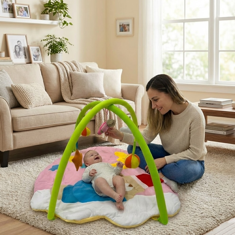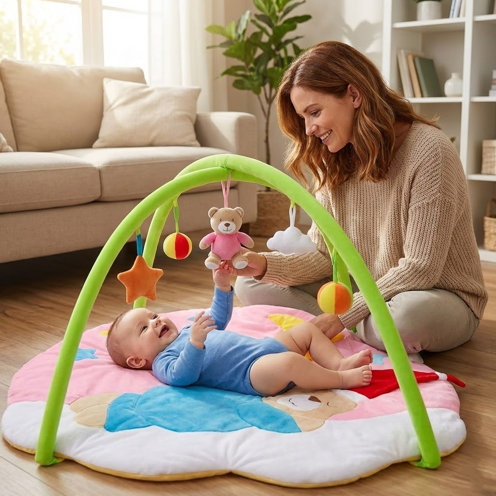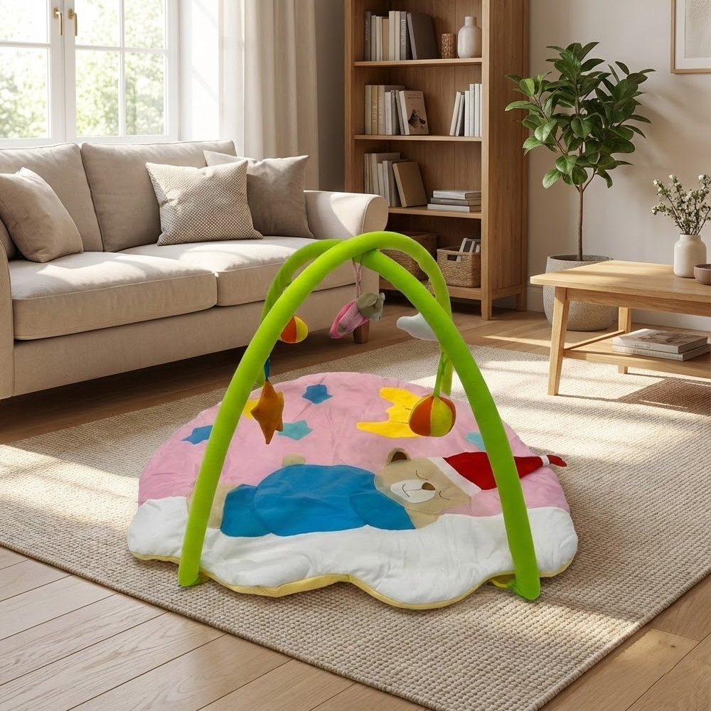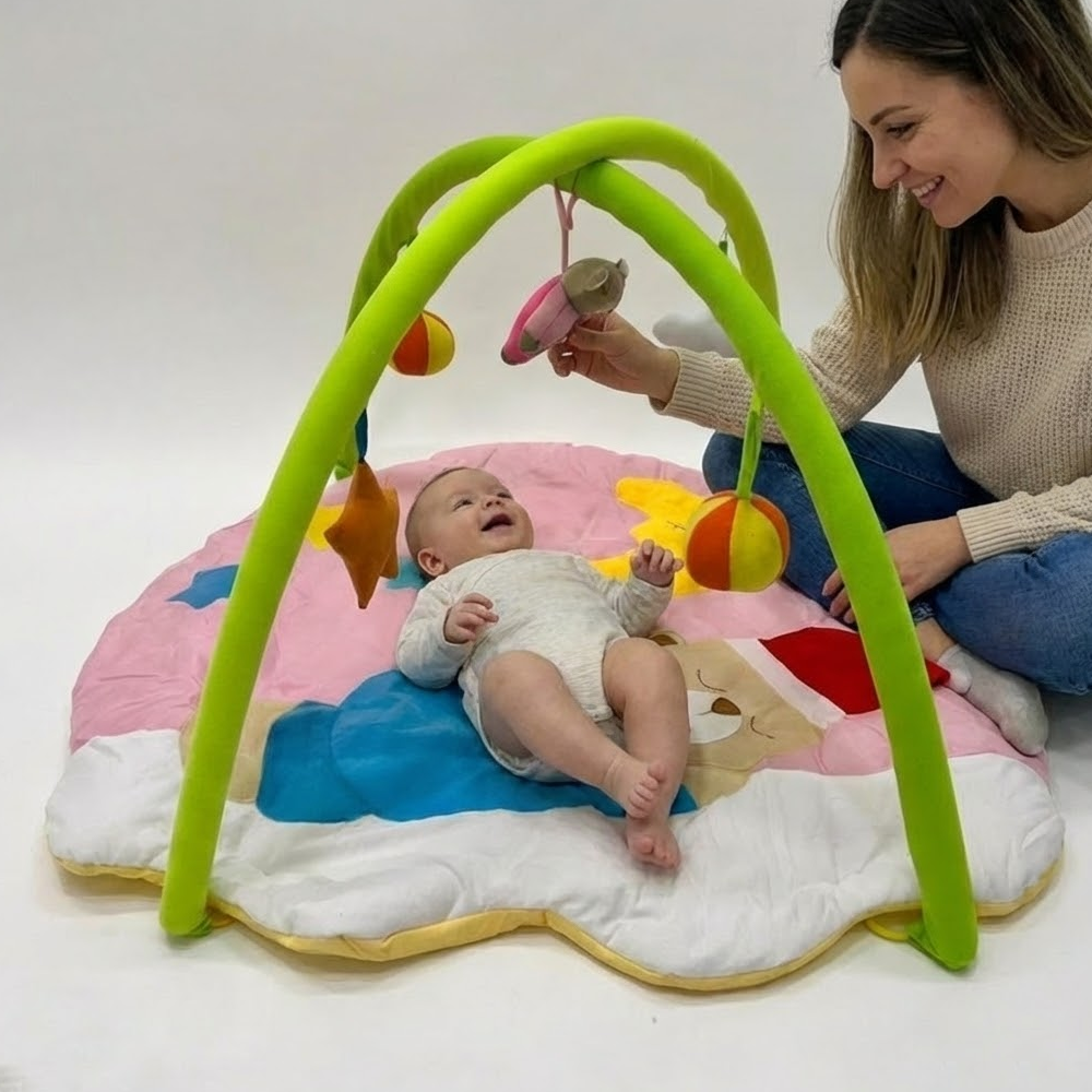 بساط ألعاب ناعم للرضّع مع أقواس وألعاب معلّقة – تصميم مريح ومحفّز من عمر 0+