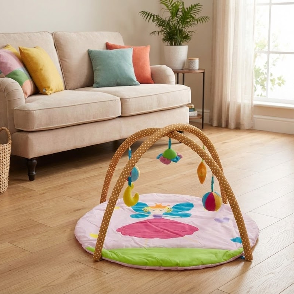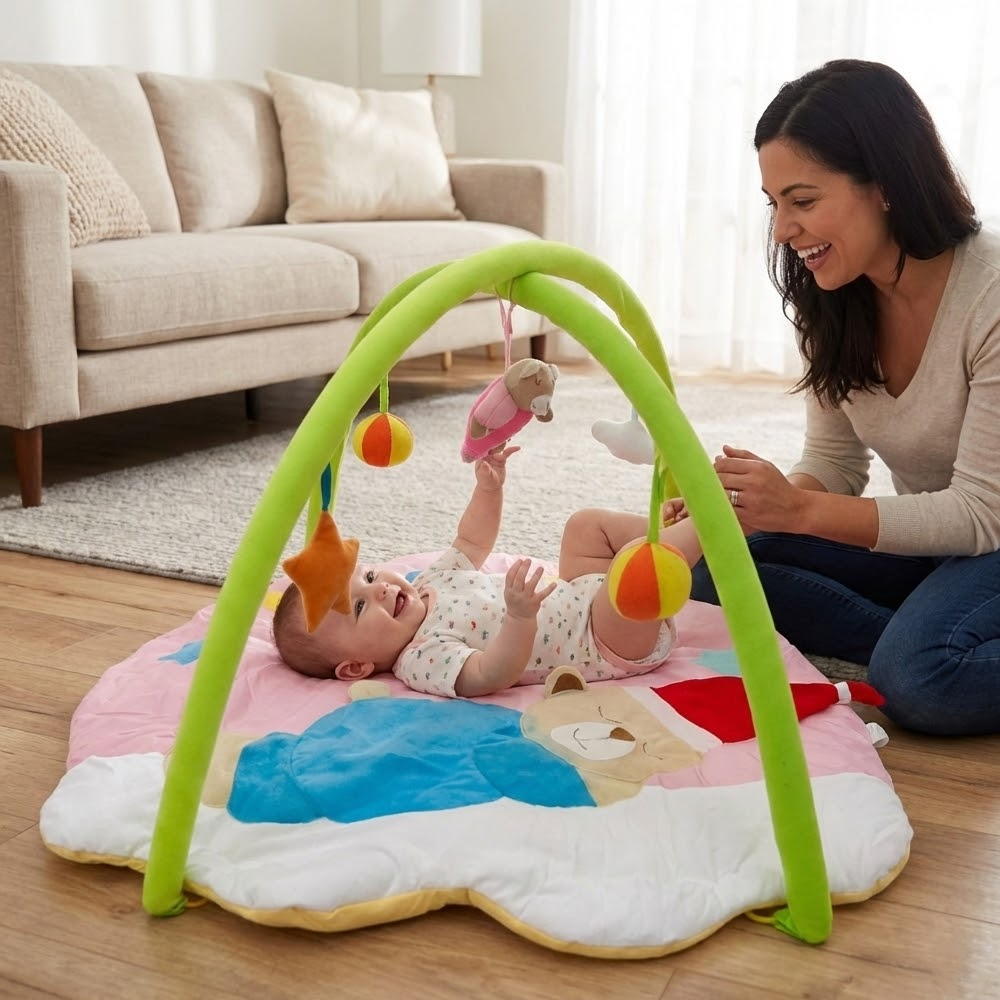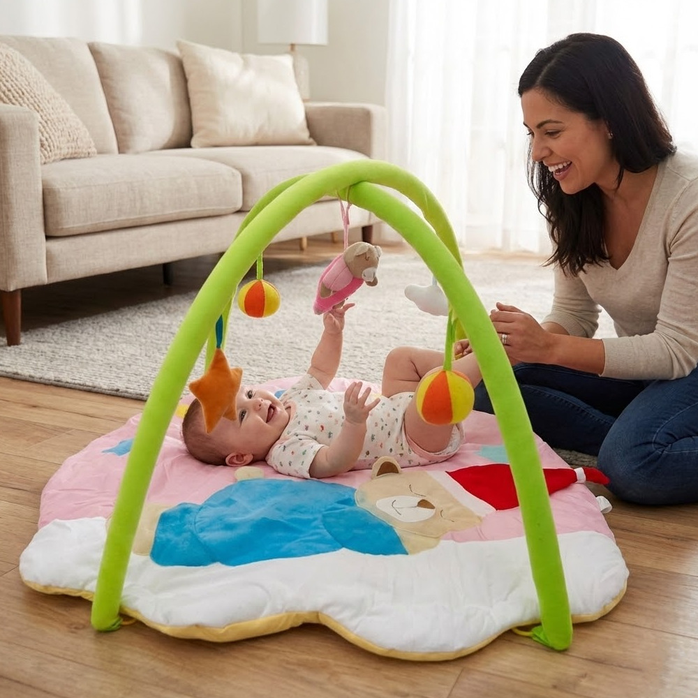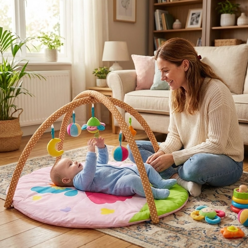 بساط ألعاب ناعم للرضّع مع أقواس وألعاب معلّقة – تصميم مريح ومحفّز من عمر 0+