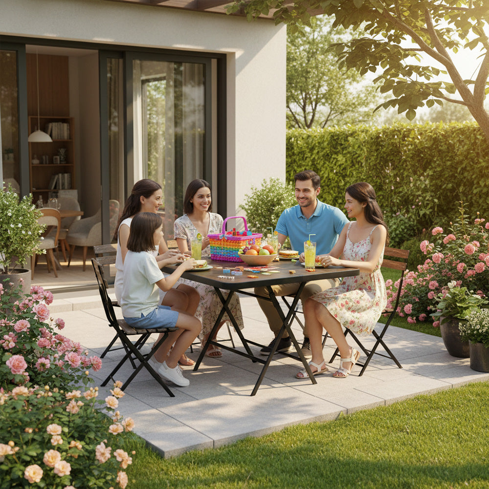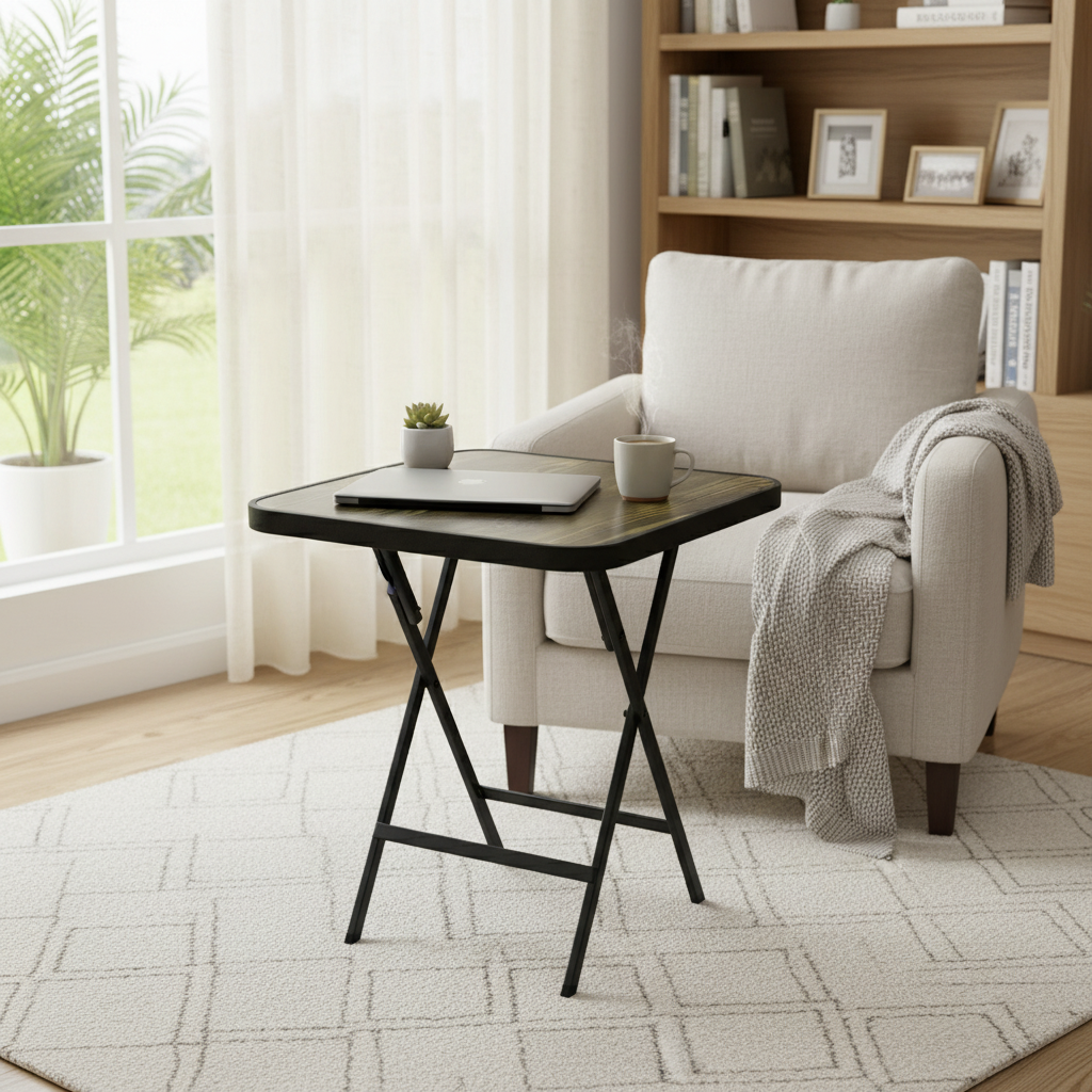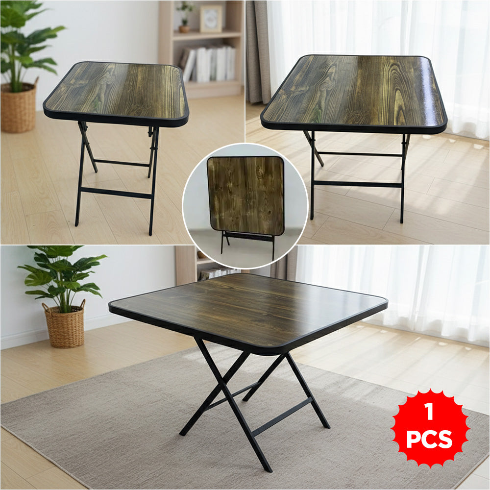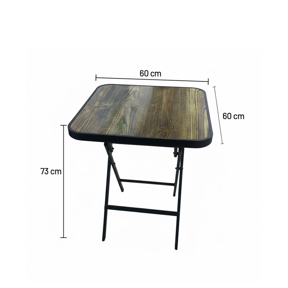 طاولة متينة قابلة للطي، بسطح خشبي وإطار معدني. متوفرة بأحجام 60 سم، 80 سم، و100 سم، مثالية لتناول الطعام، والدراسة، والعمل، والتجمعات المنزلية.