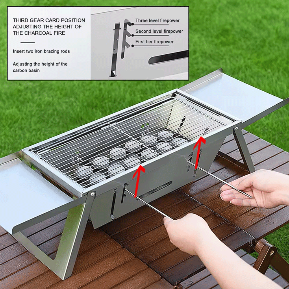 شواية باربيكيو محمولة قابلة للطي، رف شواء صغير للتخييم من الفولاذ المقاوم للصدأ للاستخدام في الهواء الطلق، شوايات منزلية سميكة على الطاولة