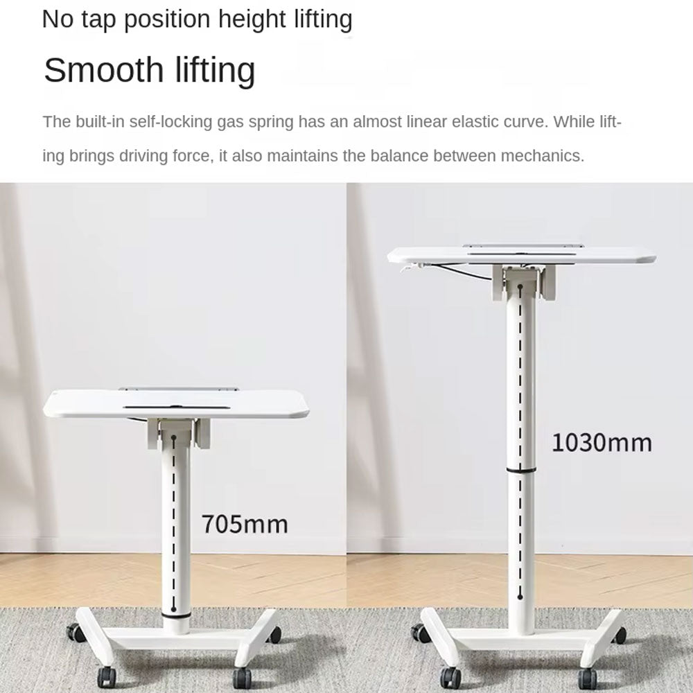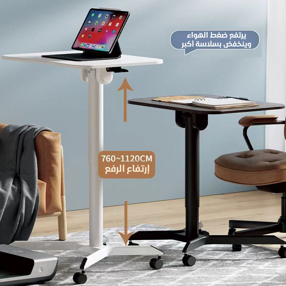 - الانتقال إلى أي مكان: بفضل تصميمه المكون من 4 عجلات قابلة للقفل، يعد مكتب الكمبيوتر المحمول المتداول خيارًا ممتازًا للأشخاص الذين يحتاجون إلى العمل أو الدراسة من أي مكان