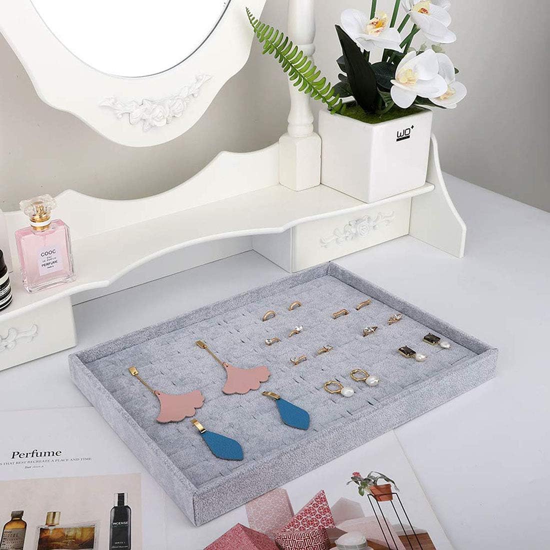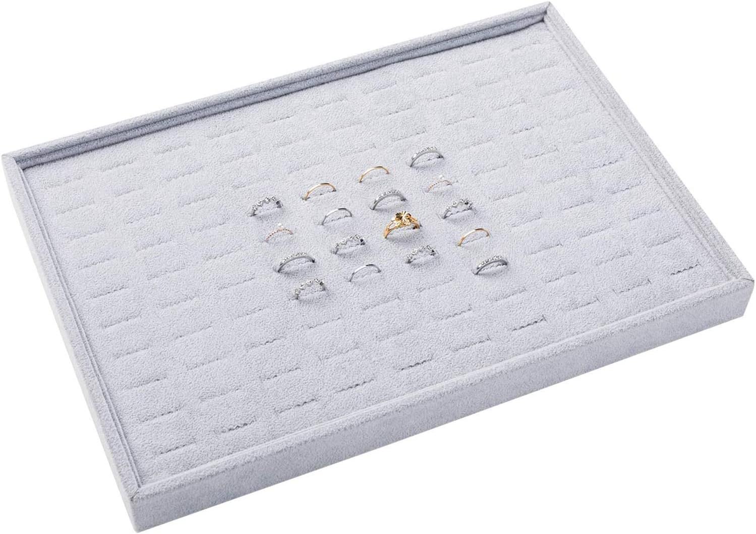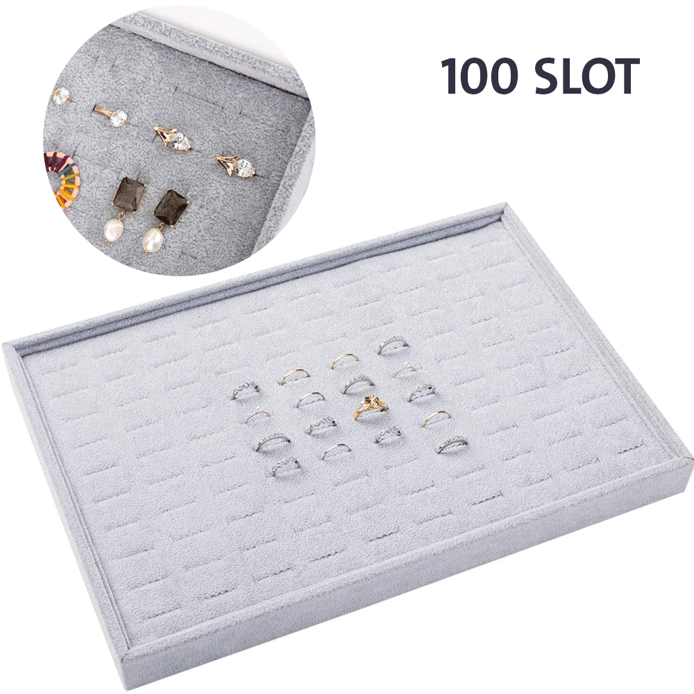 مخملية قابلة للتكديس 100 فتحة حلقة إدراج علبة مجوهرات عرض منظم حامل صندوق تخزين حافظة وسادة مكدسات لخزانة الملابس، تزيين طاولة الزينة، الخزانة، درج السكن الجامعي
