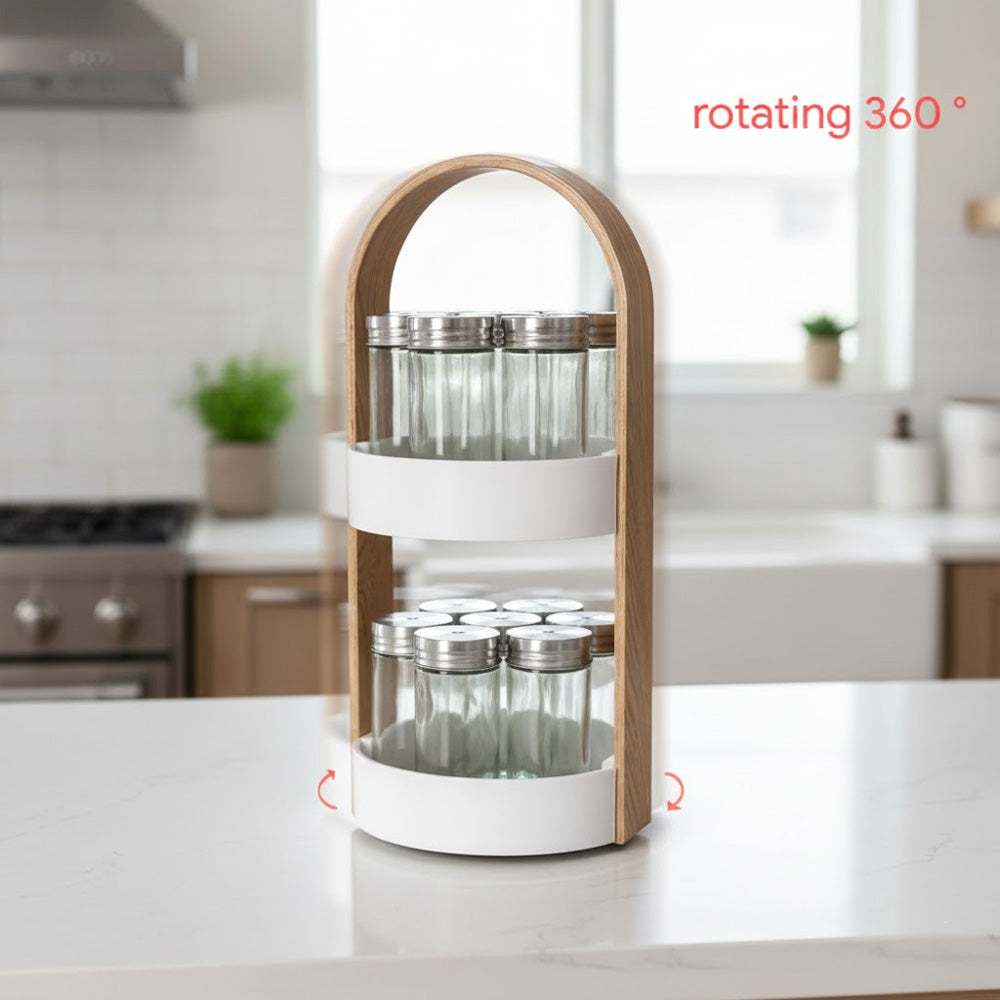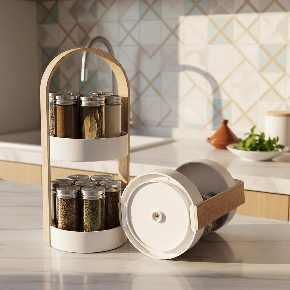 رف التوابل الدوّار المكون من 14 قطعة هو حل عملي وموفر للمساحة لتنظيم التوابل والأعشاب. يتميز هذا الرف بتصميمه الدائري وقاعدته المتينة وآلية الدوران السلسة، مما يتيح الوصول بسهولة إلى جميع التوابل بلفة بسيطة.