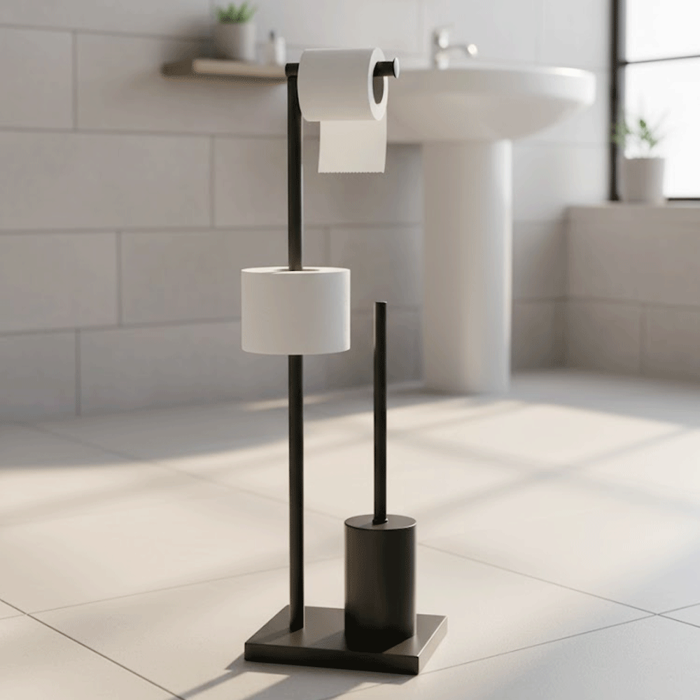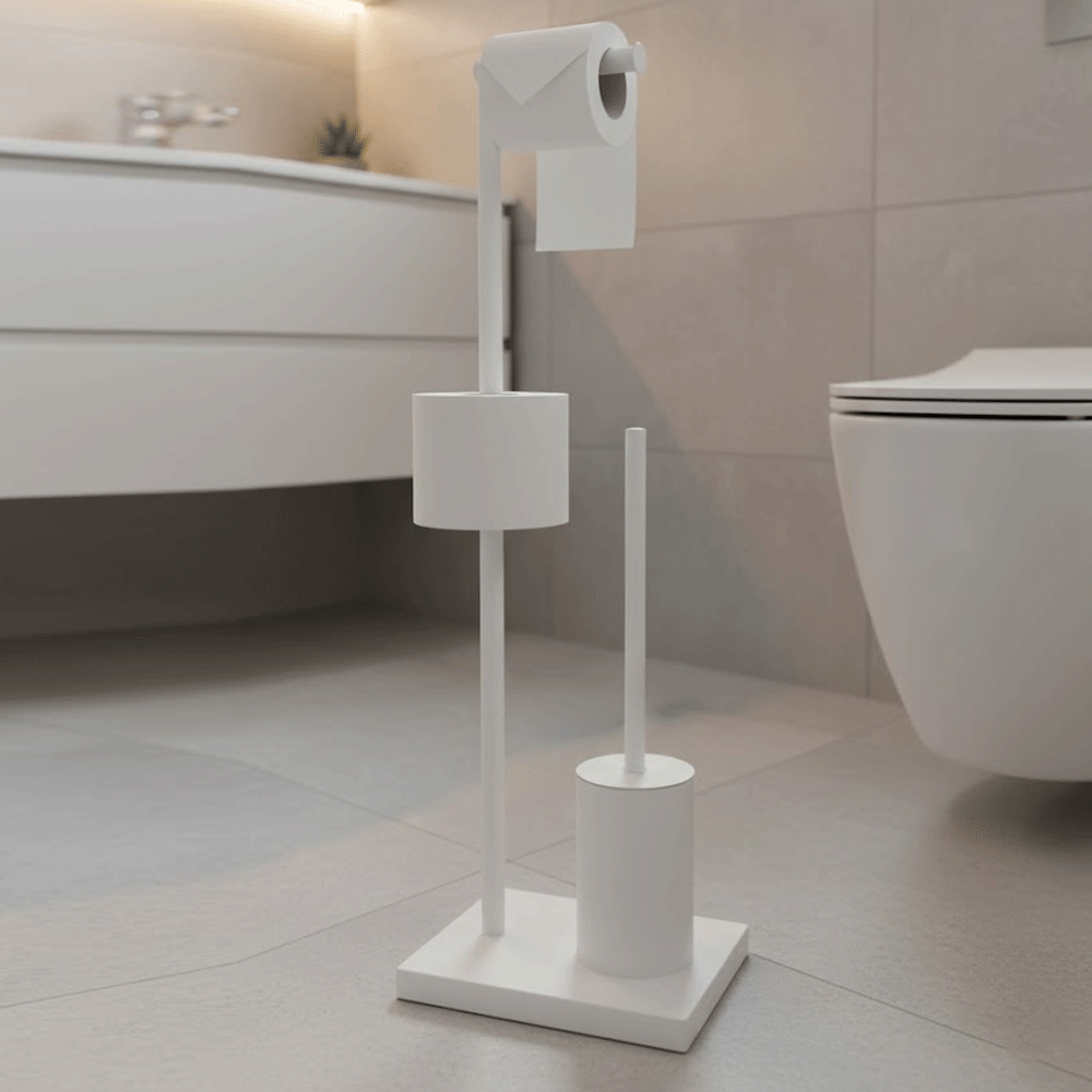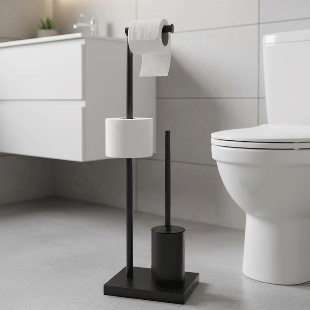 حامل ورق تواليت زاك مع فرشاة، مقاس 20.5 × 16 × 65 سم. زاك هو حامل ورق تواليت عملي وأنيق مزود بفرشاة تواليت مدمجة، يجمع بين العملية والتصميم العصري. مصنوع من معدن متين وبلاستيك عالي الجودة، مما يوفر ثباتًا ومقاومة للرطوبة وسهولة في التنظيف، وهي ميزات أساسية في كل حمام. أبعاده المدمجة 20.5 × 16 × 65 سم تجعله مثاليًا حتى للمساحات الصغيرة، حيث يوفر مساحة تخزين مريحة لورق التواليت وفرشاة تواليت أنيقة في قطعة واحدة متكاملة. تصميمه البسيط والأنيق يُكمل مجموعة متنوعة من أنماط الديكور الداخلي، من البسيط إلى الصناعي. حامل ورق تواليت زاك هو حل عملي يجمع بين سهولة الاستخدام اليومي والجمال العصري لإكسسوارات الحمام. ٢٠.٥ × ١٦ × ٦٥ سم