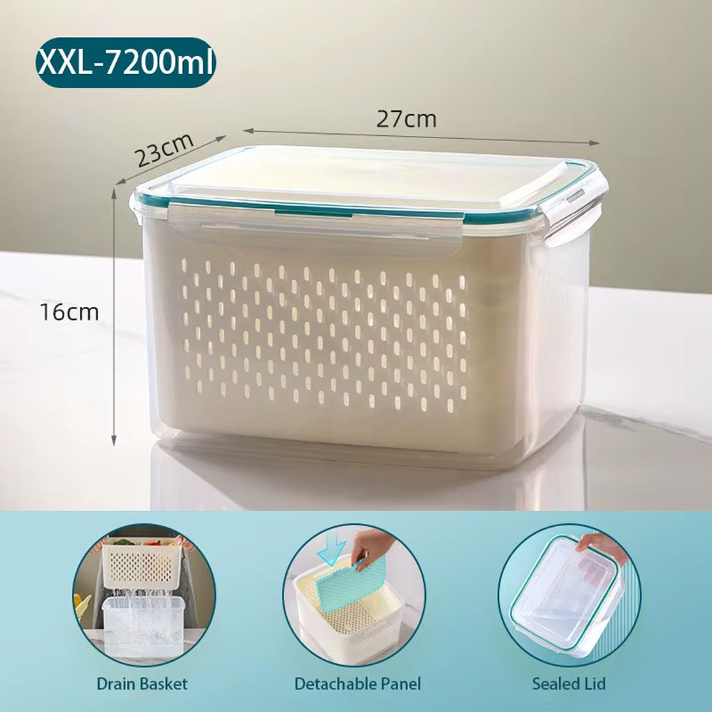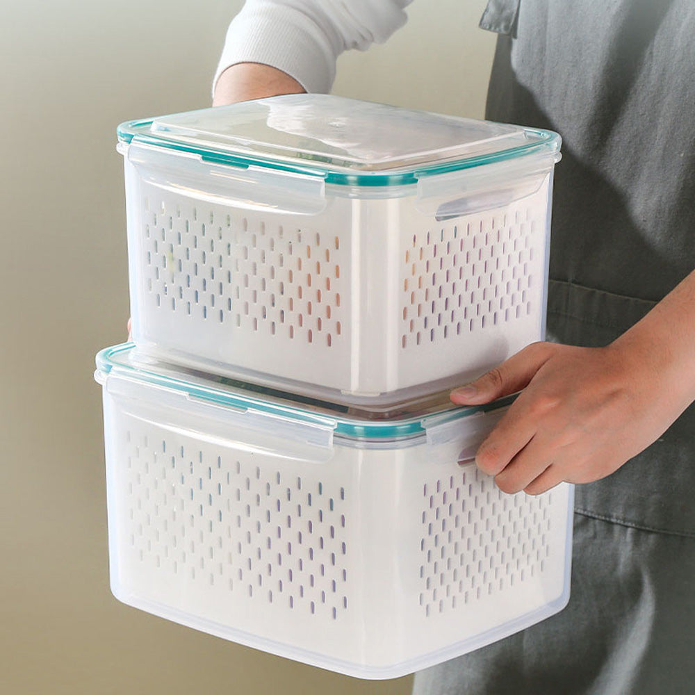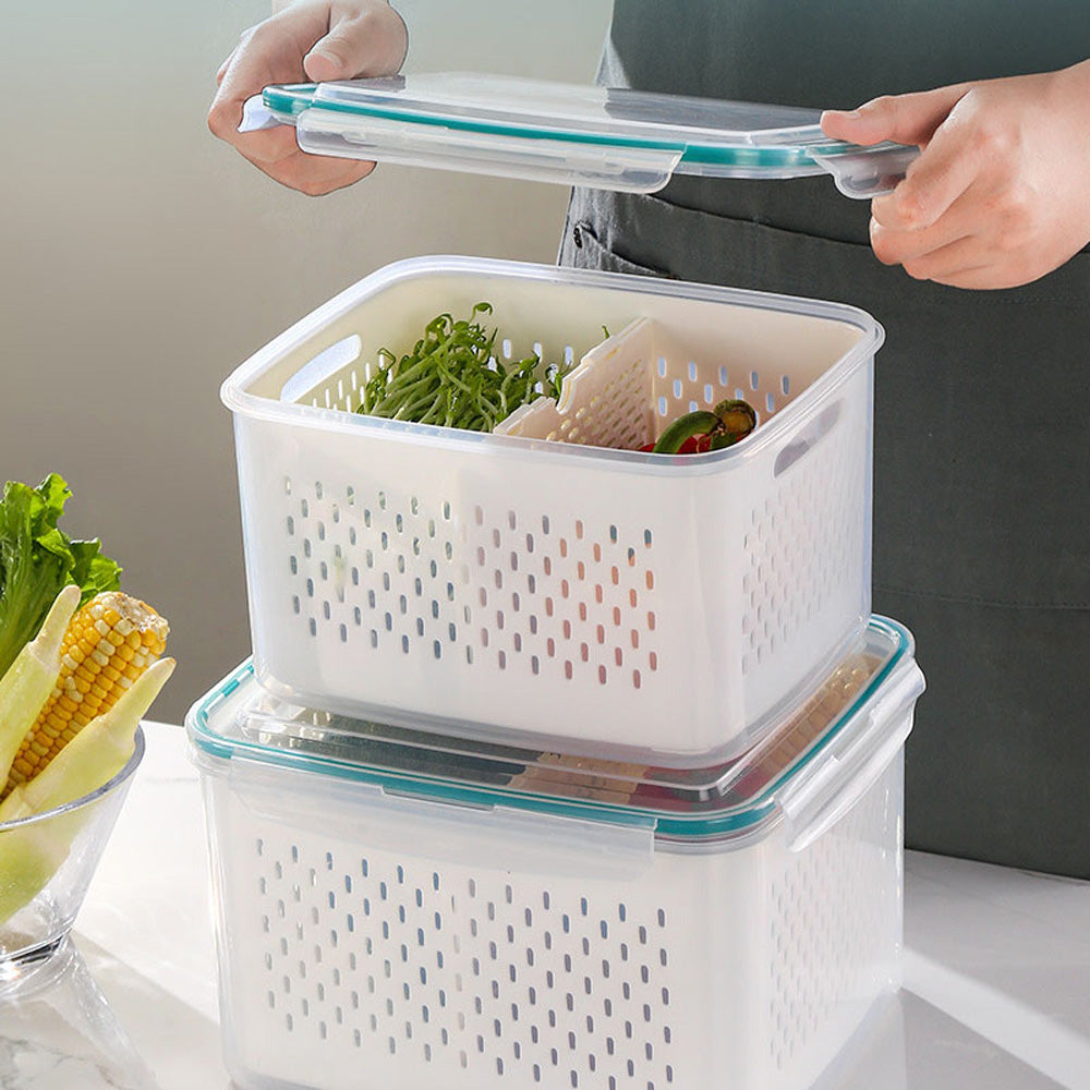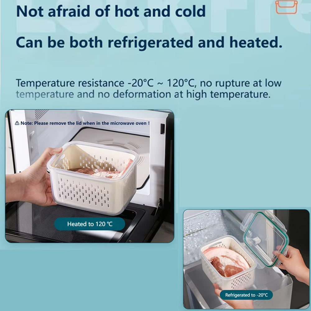 حافظ على طعامك طازجًا ومنظمًا مع سلة التصريف المحكمة الإغلاق هذه. مصممة بغطاء محكم الإغلاق مانع للتسرب، وسلة داخلية قابلة للإزالة، ولوح قابل للفصل، وهي مثالية لغسل وتصريف وتخزين الفواكه والخضراوات واللحوم وبقايا الطعام. آمنة للاستخدام في المجمد (-20 درجة مئوية) والميكروويف (حتى 120 درجة مئوية)، هذه الحاوية متينة ومتعددة الاستخدامات، ومثالية لأي مطبخ.