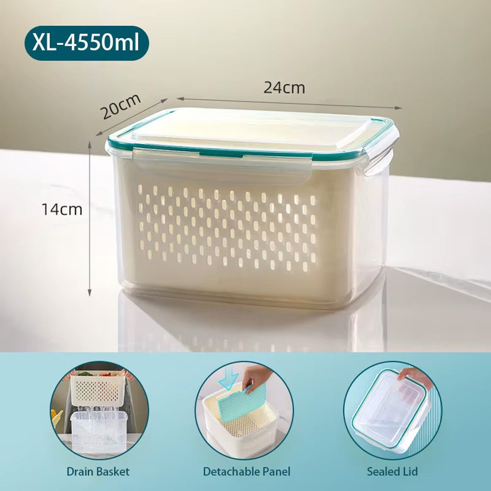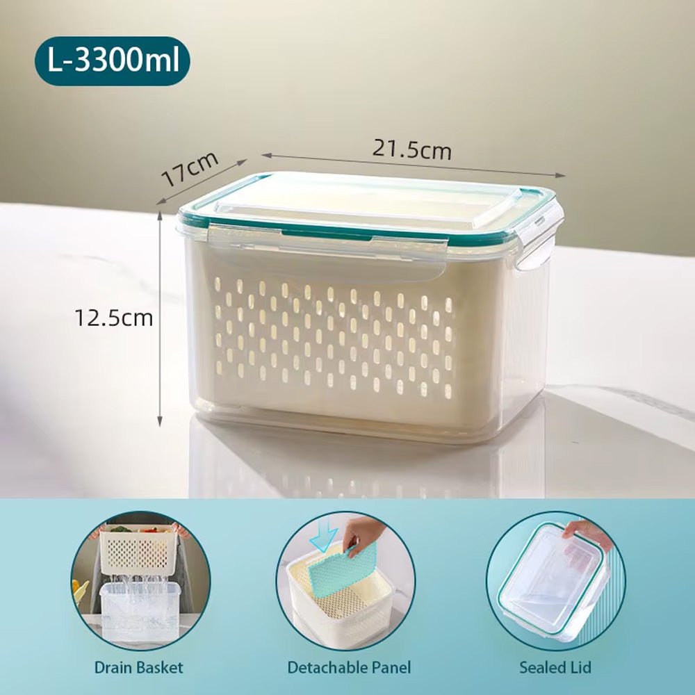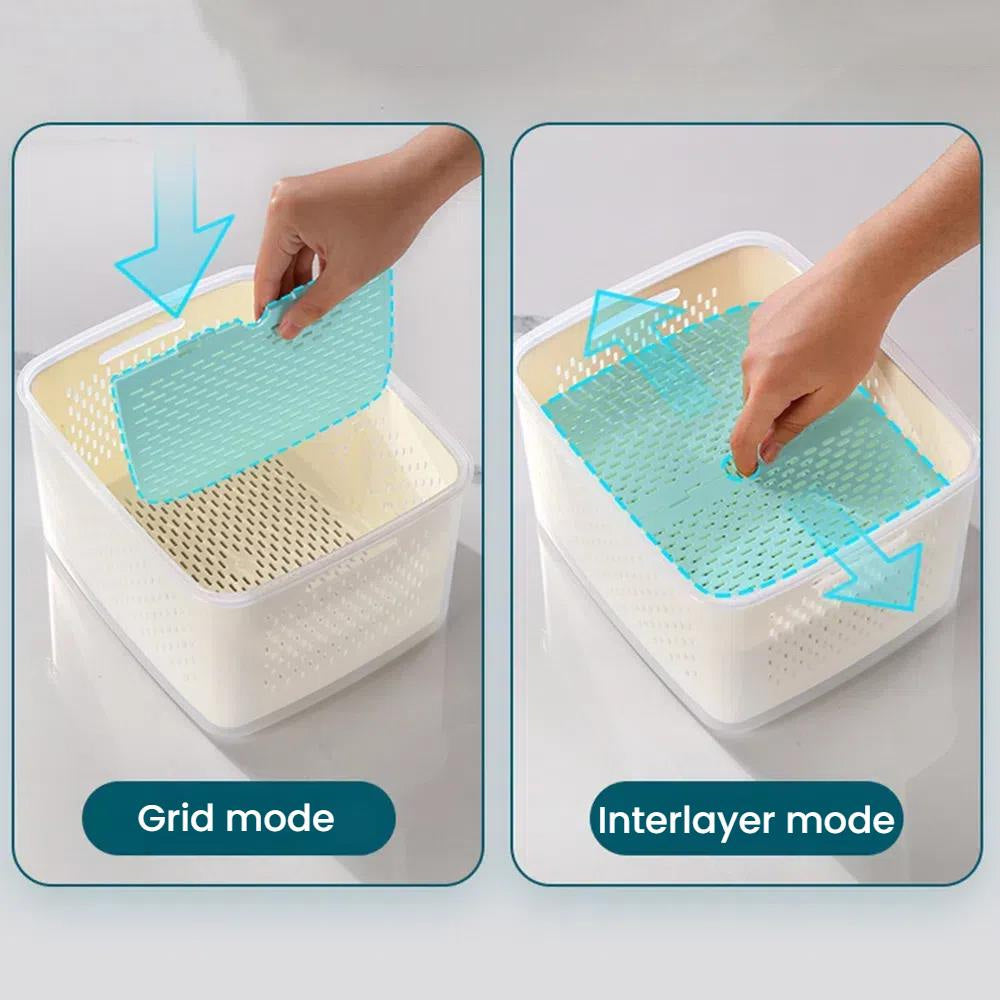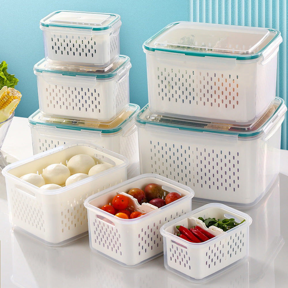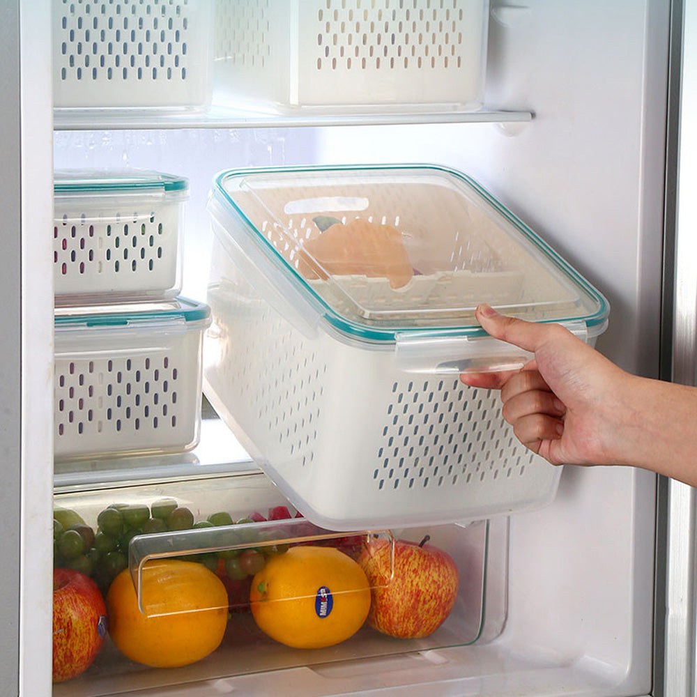 حافظ على طعامك طازجًا ومنظمًا مع سلة التصريف المحكمة الإغلاق هذه. مصممة بغطاء محكم الإغلاق مانع للتسرب، وسلة داخلية قابلة للإزالة، ولوح قابل للفصل، وهي مثالية لغسل وتصريف وتخزين الفواكه والخضراوات واللحوم وبقايا الطعام. آمنة للاستخدام في المجمد (-20 درجة مئوية) والميكروويف (حتى 120 درجة مئوية)، هذه الحاوية متينة ومتعددة الاستخدامات، ومثالية لأي مطبخ.