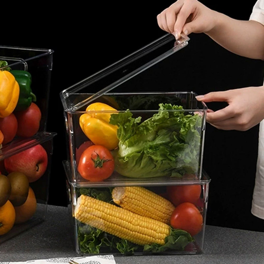 حافظ على ثلاجتك مرتبة وواضحة مع هذا الصندوق المنظم الشفاف القابل للتكديس. مصنوع من بلاستيك شفاف متين وعالي الجودة، ويتميز بمقابض مدمجة لسهولة الرفع، وقاعدة مانعة للانزلاق، وغطاء مُحكم يُتيح لك تكديس عدة صناديق بأمان. مثالي لتخزين الفواكه والخضراوات والوجبات الخفيفة والزجاجات، أو حتى أغراض المخزن. متين، سهل التنظيف، ومثالي لتوفير مساحة أكبر في الثلاجة.