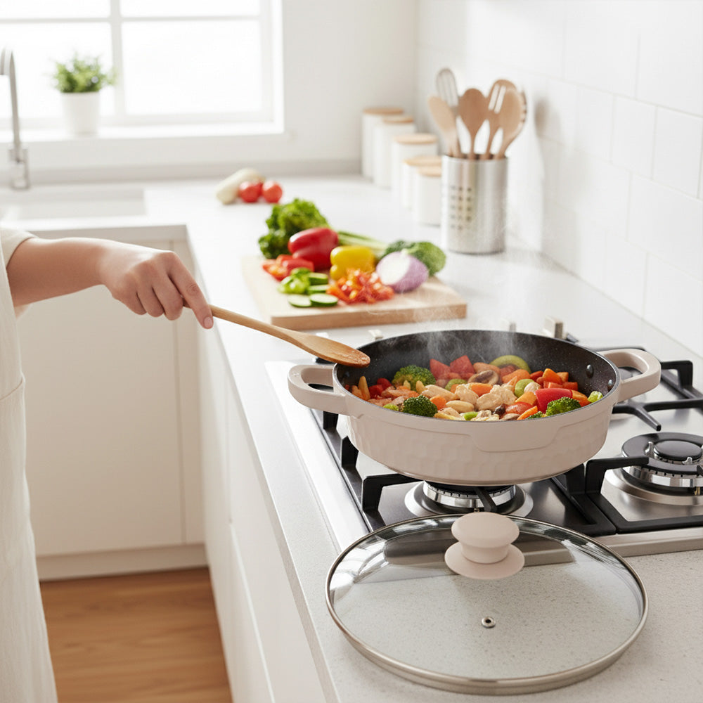 مقلاة عميقة ٢٨ سم مع غطاء - مثالية للقلي والتشويح والطهي العميق
