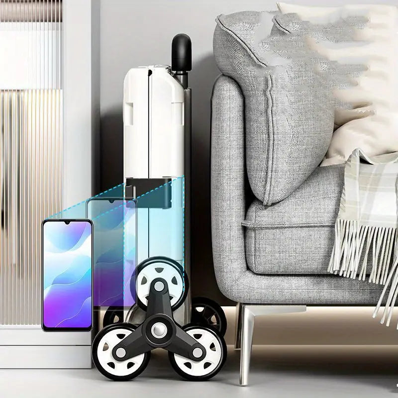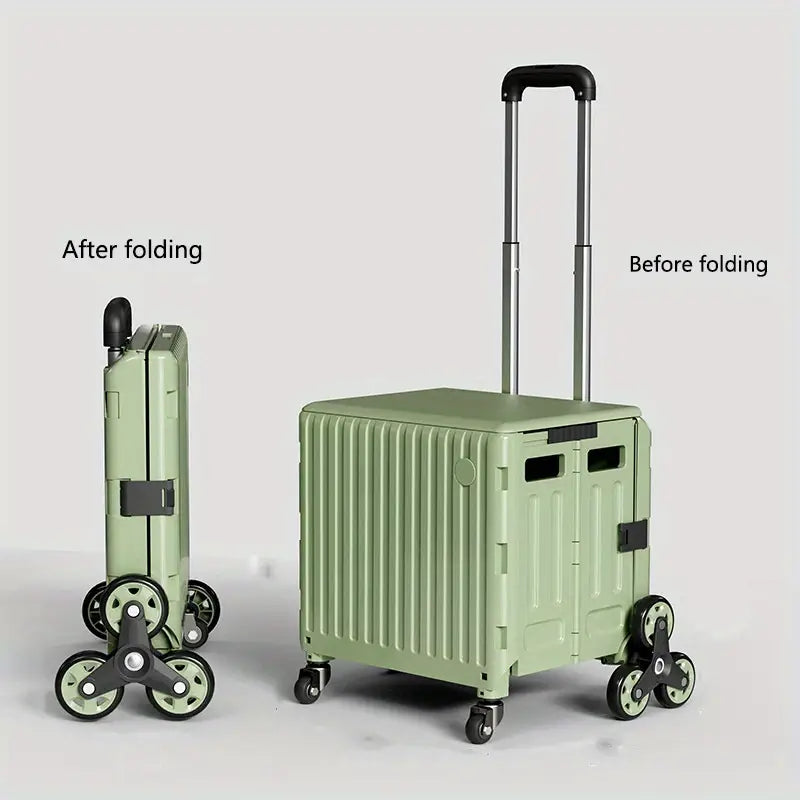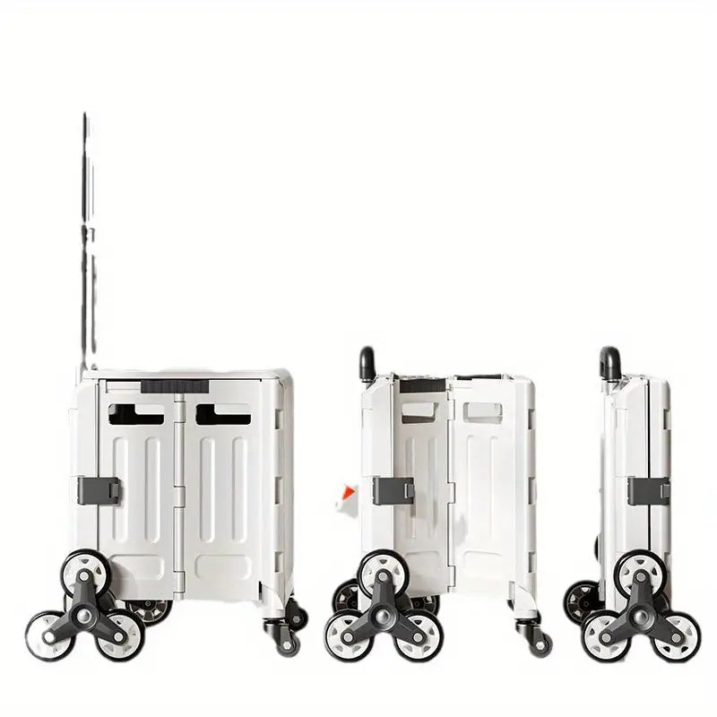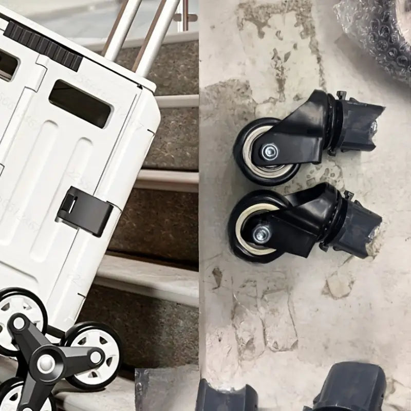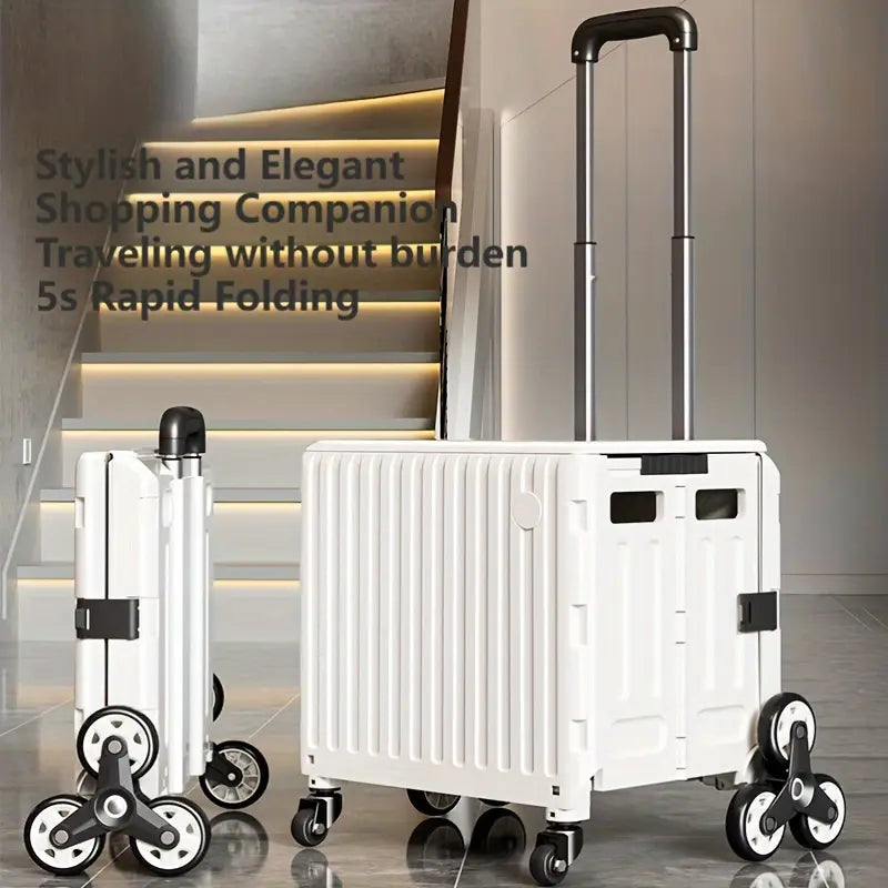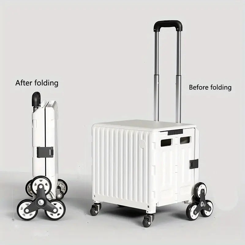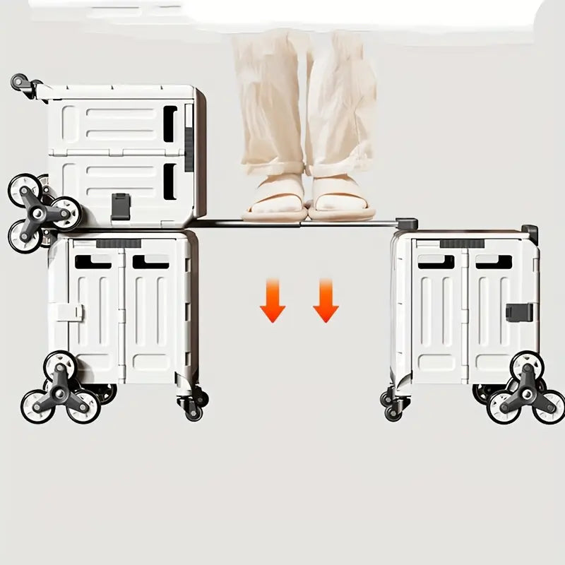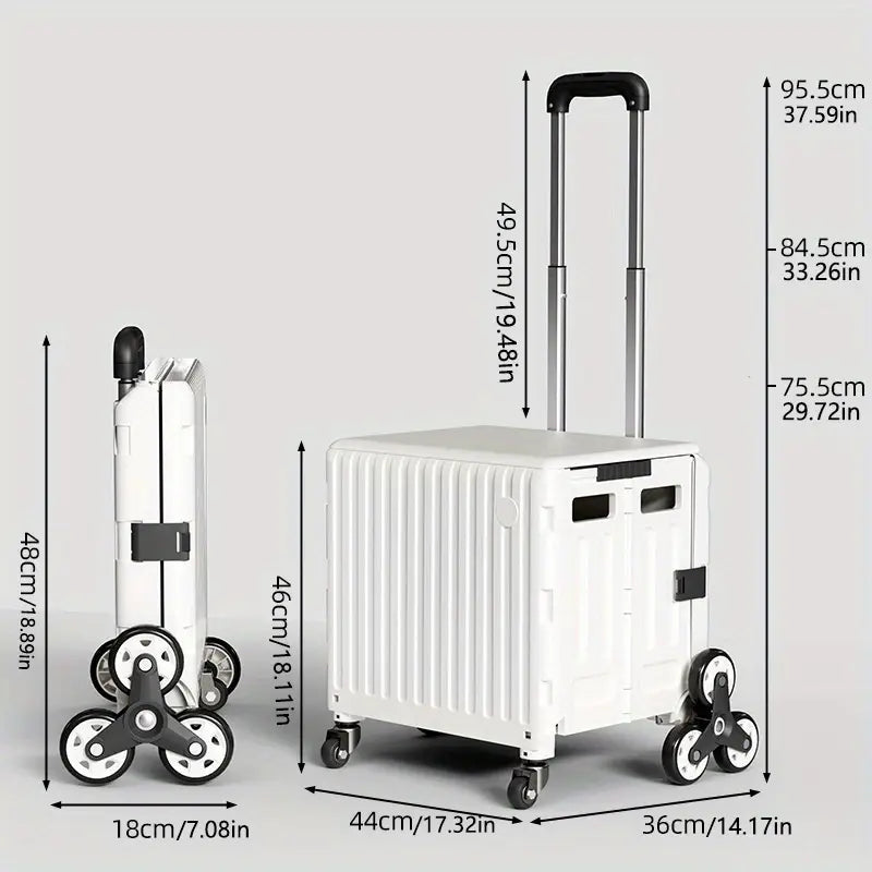 عربة تخزين قابلة للطي بتصميم عصري، 47.01 لتر، مع غطاء - عربة معدنية وبلاستيكية متينة بعجلات لتسلق السلالم ، مثالية للمعلمين وتنظيم المنزل، سلال وصناديق وحاويات لتنظيم المنزل.