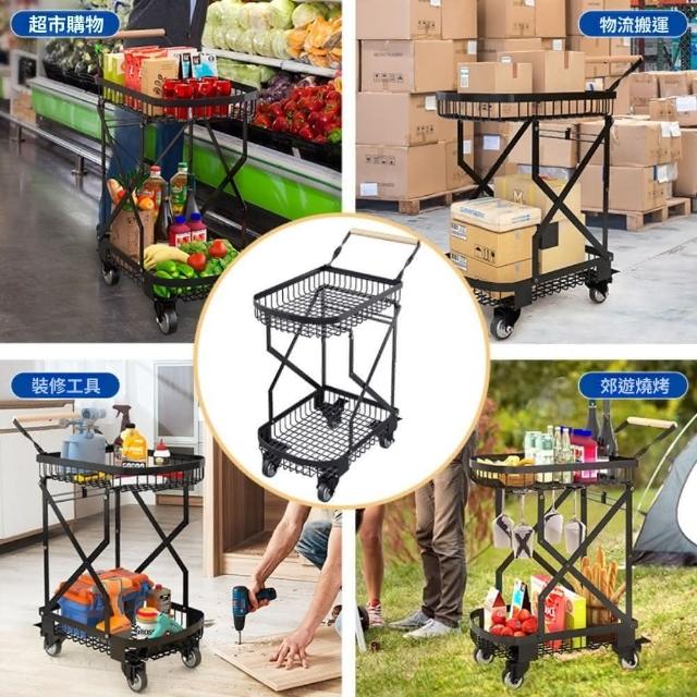 عربة ملابس معدنية محمولة مزدوجة أيرلندية متعددة الأغراض قابلة للطي للسفر، ومساحة تخزين طعام مشتركة مع أرفف قابلة للانزلاق، مع 4 عجلات عالمية وفرامل للقدمين للتسوق، والسيارة، والتخييم، والتعامل - تصل إلى 50 كجم.